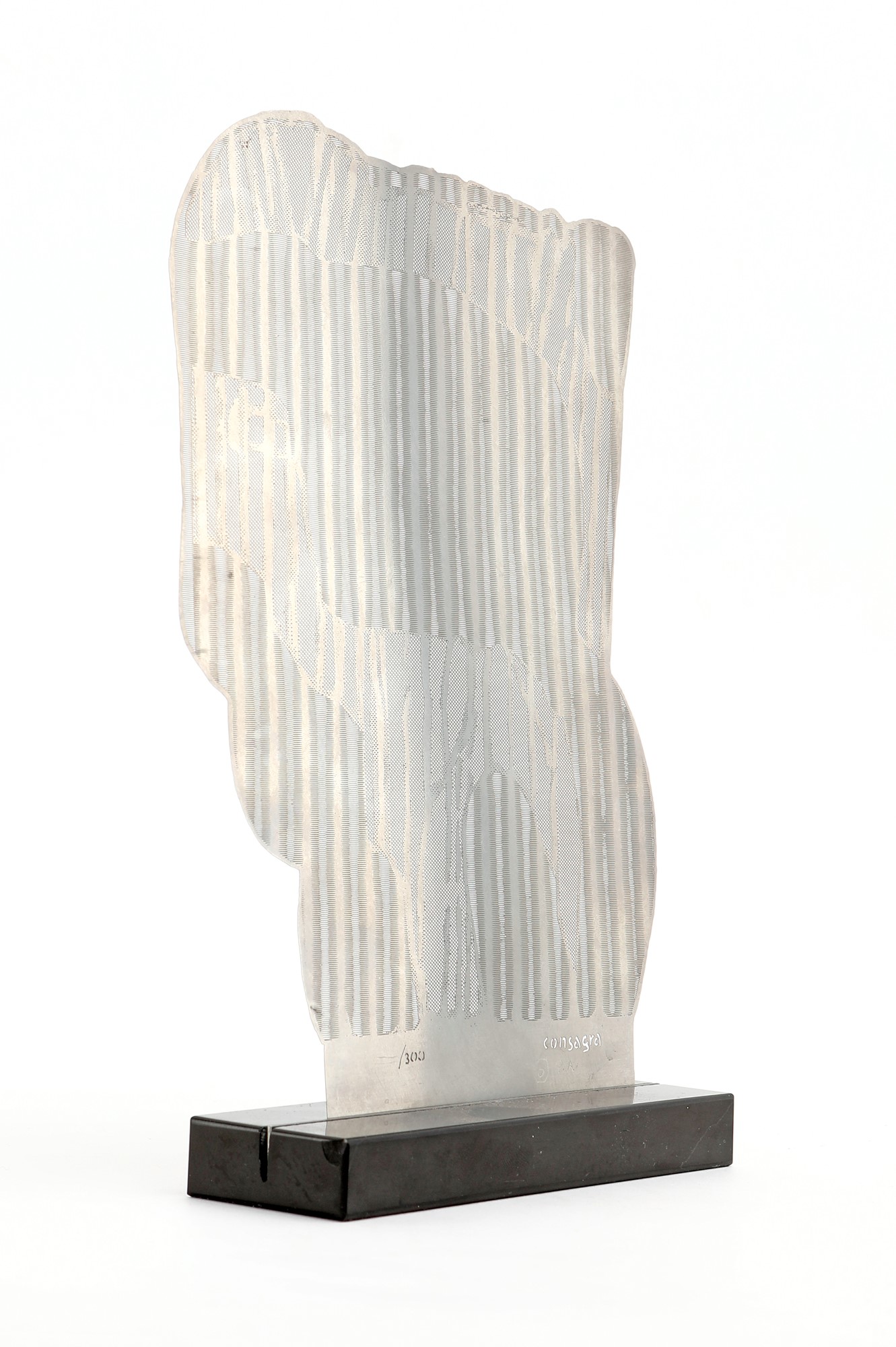 Scultura in acciaio inox cm 24,7x18x0,02 - base in marmo cm 2x15x5