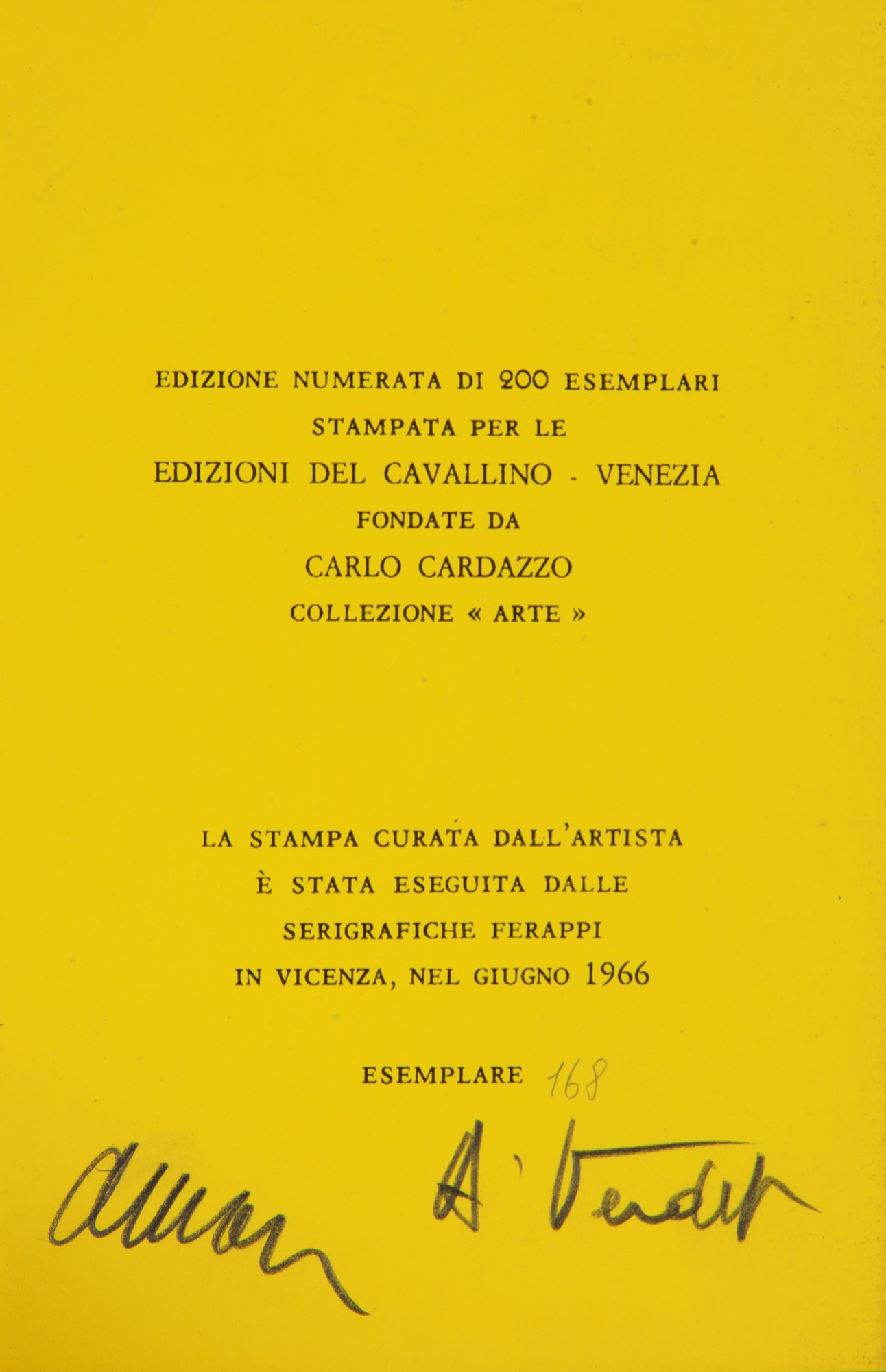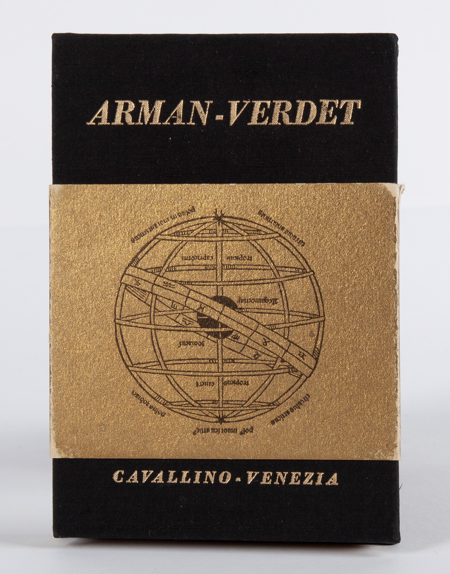 Libro d'artista realizzato per le Edizioni del Cavallino, Venezia. Firmato e numerato in fondo al colophon Arman 168. Gli esemplari totali sono 200