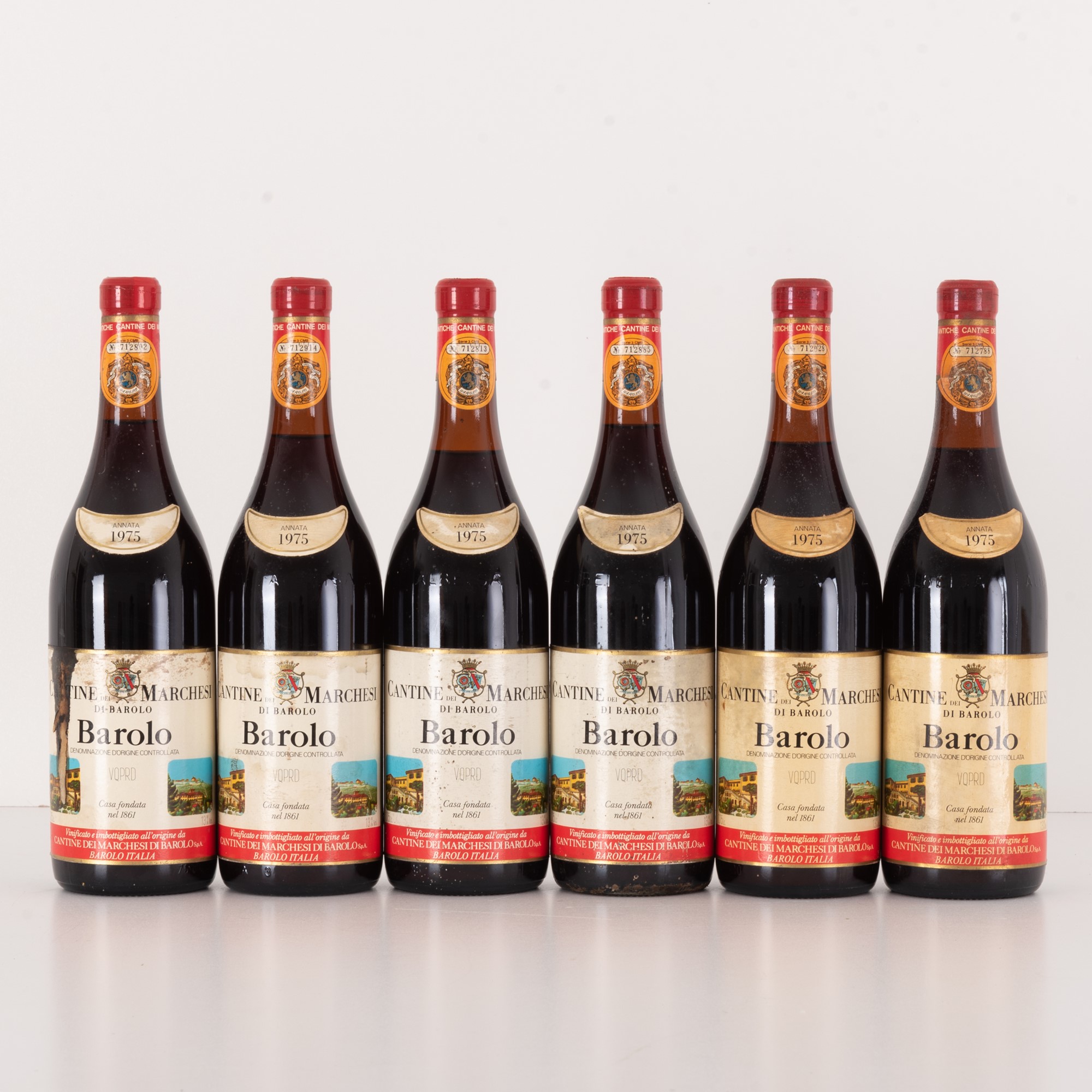 Lotto di 6 bottiglie Barolo Cantine dei Marchesi di Barolo 1975