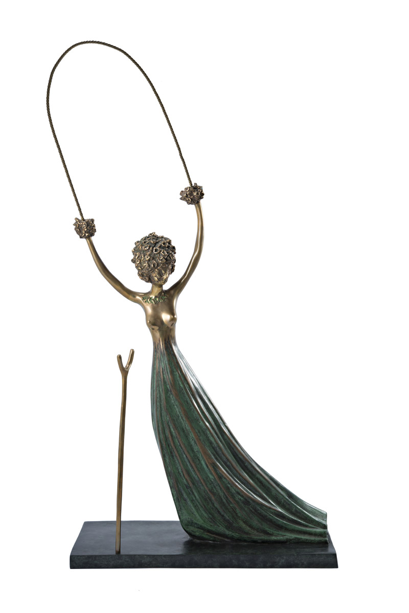 Salvador Dalì (Figueres 1904 ‑ 1989) “Alice au pays des Merveilles” 1977, scultura in bronzo verde e oro, cm h 90,5, es.226/350. Editore Jemelton Ltd, London. L’opera è accompagnata da certificato di autenticità della Jemelton Ltd, London