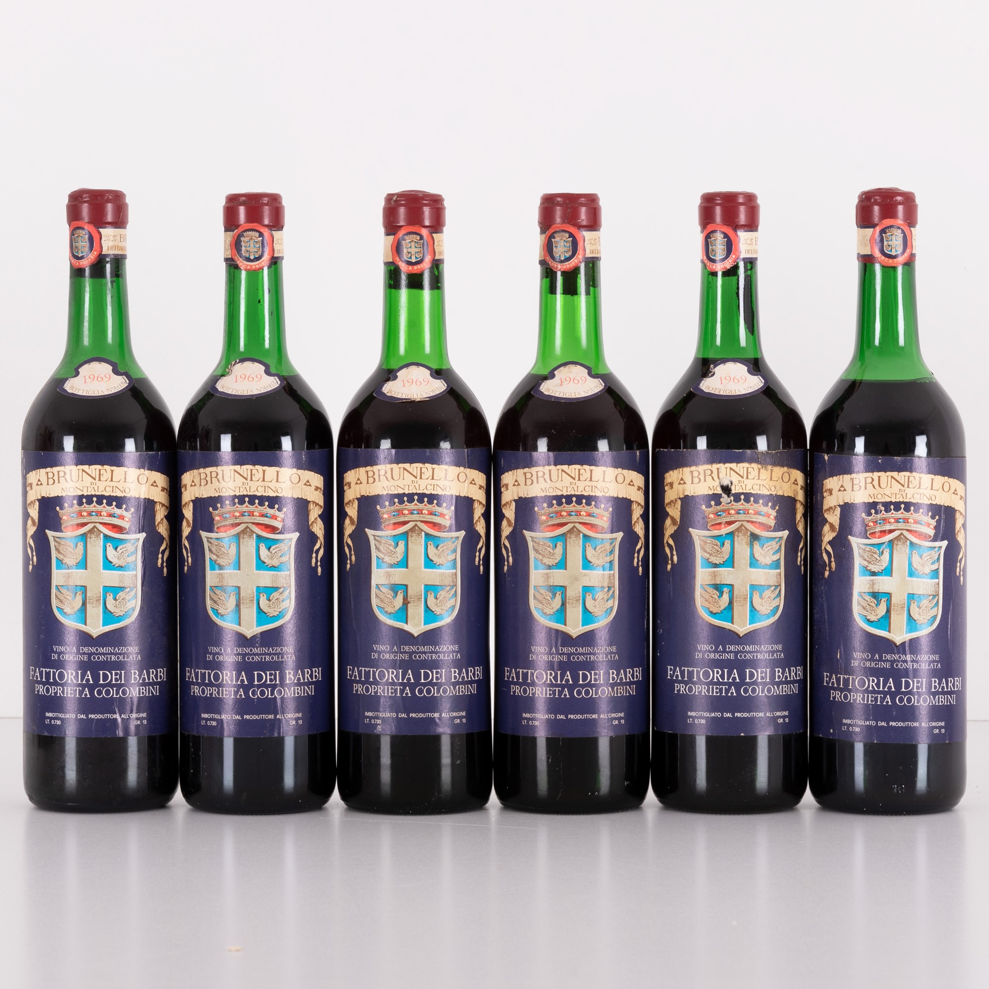 Lotto di 6 bottiglie Brunello di Montalcino Fattoria dei Barbi 1969