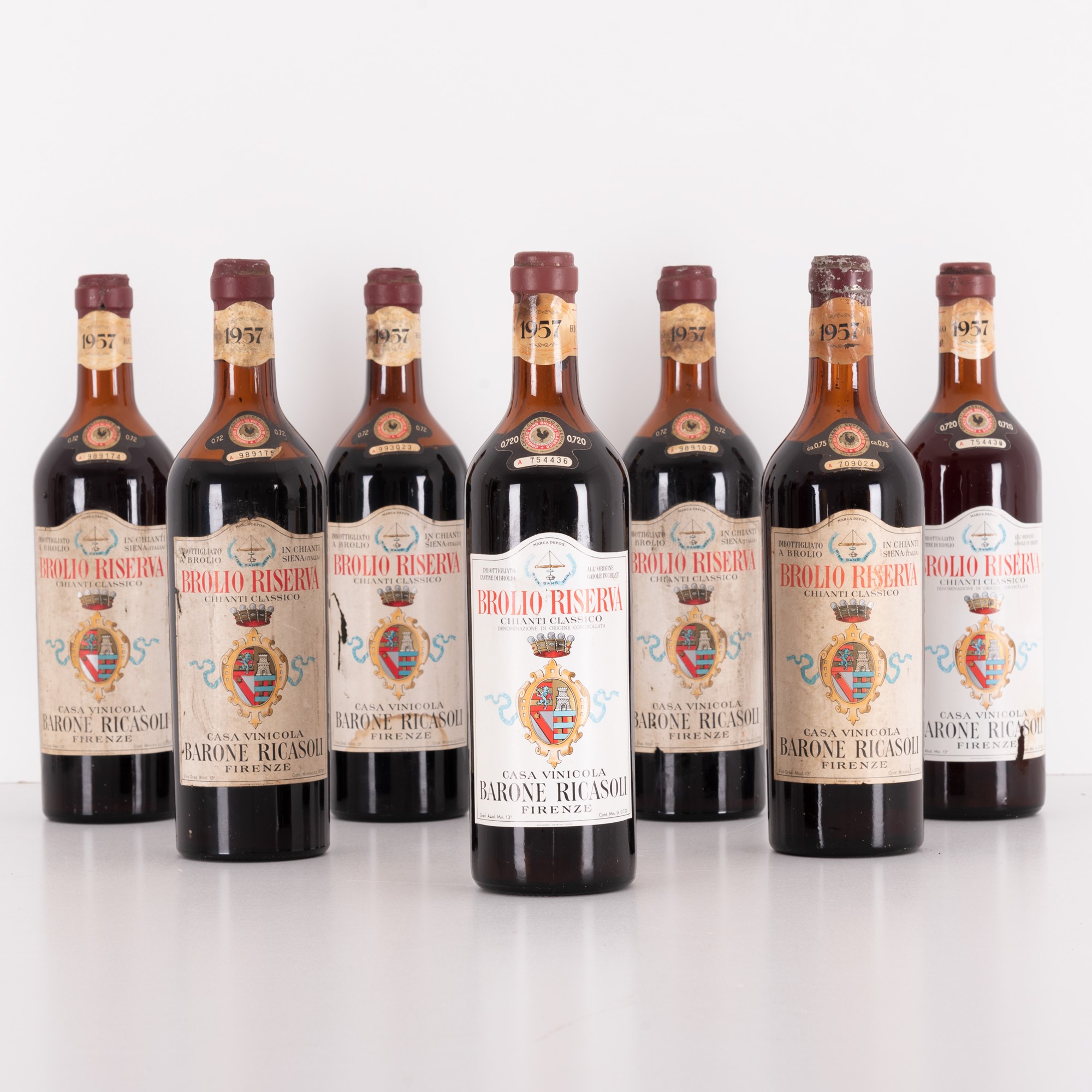 Lotto di 7 bottiglie Chianti Brolio riserva Casa Vinicola Barone Ricasoli 1957