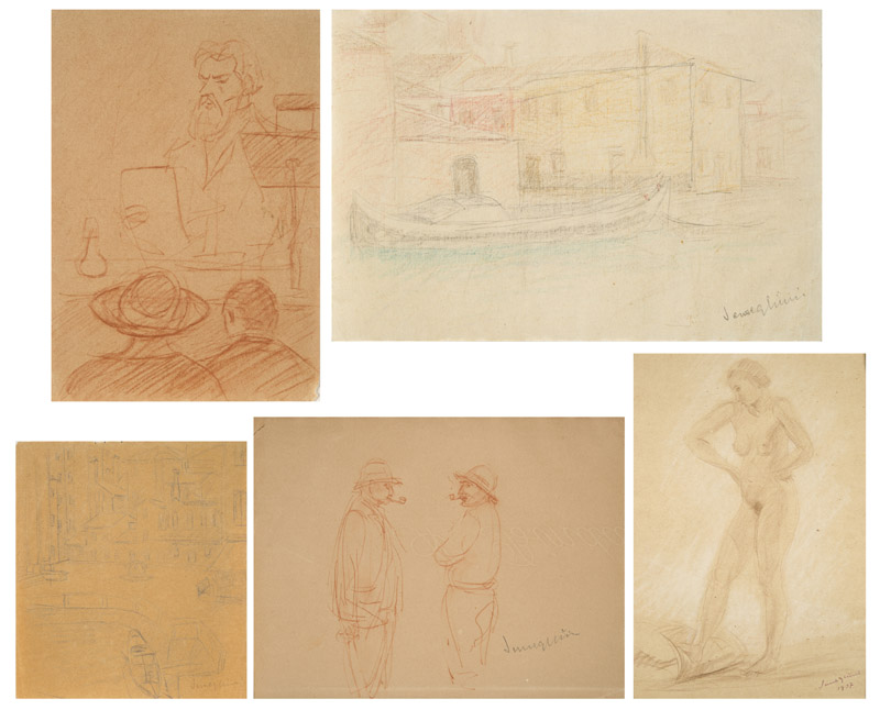 disegni su carta: “Nudo di donna”, “Venezia”, “Due pescatori”,