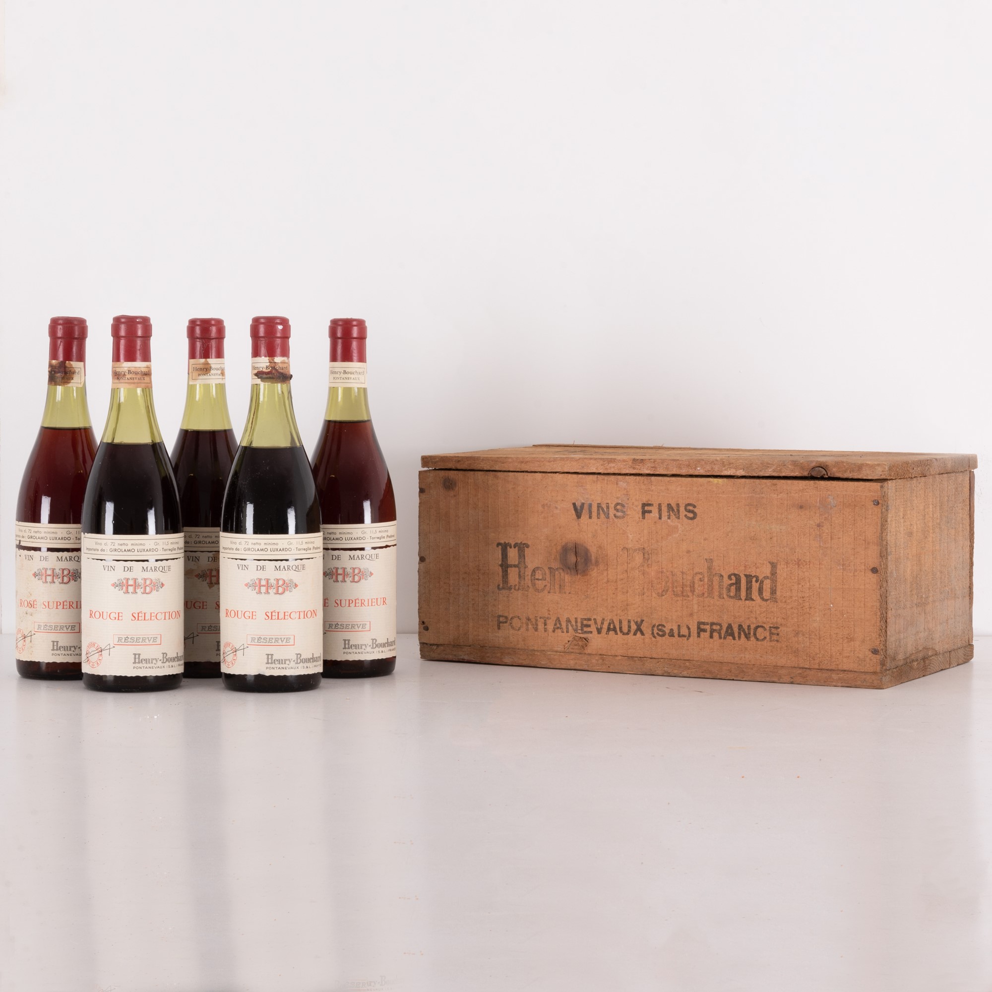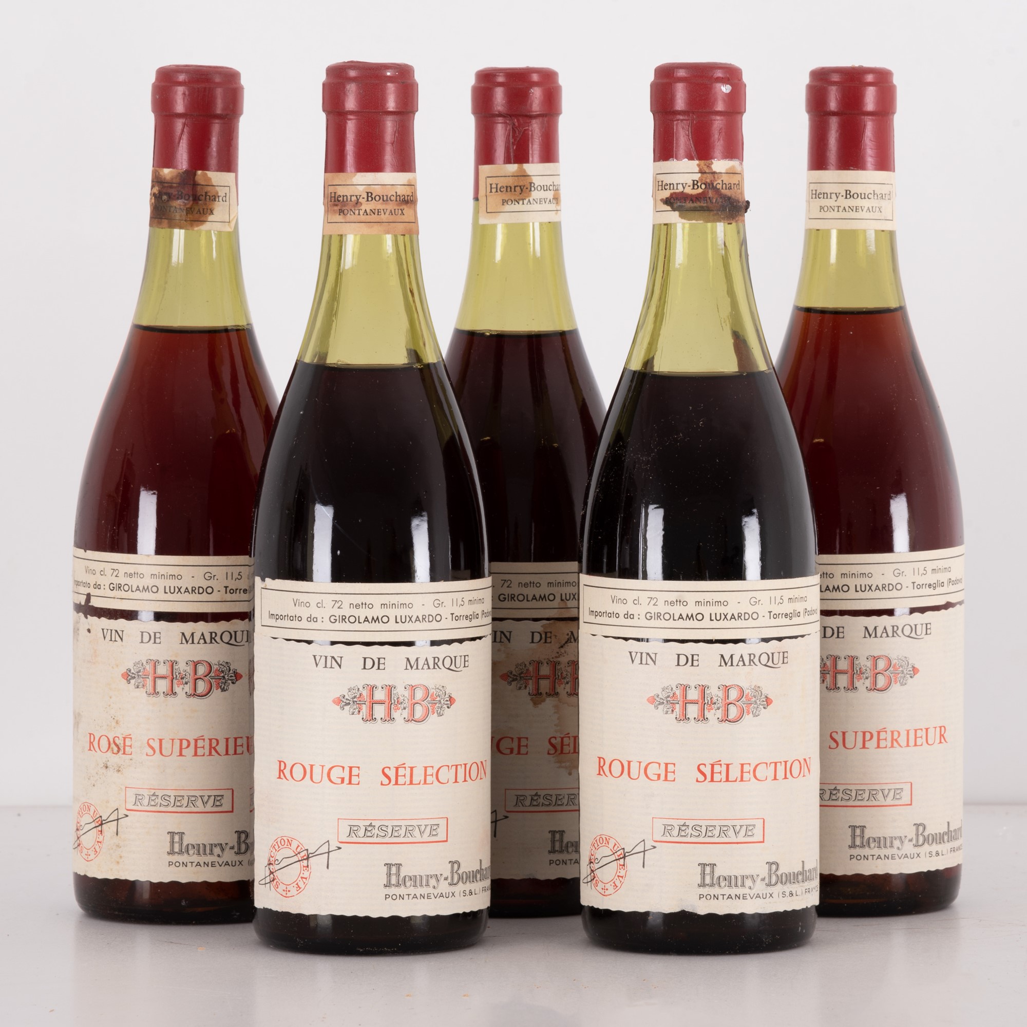 Lotto di 5 bottiglie in cassa di legno Rosé supérieur réserve Henry-Bouchard Anni '60