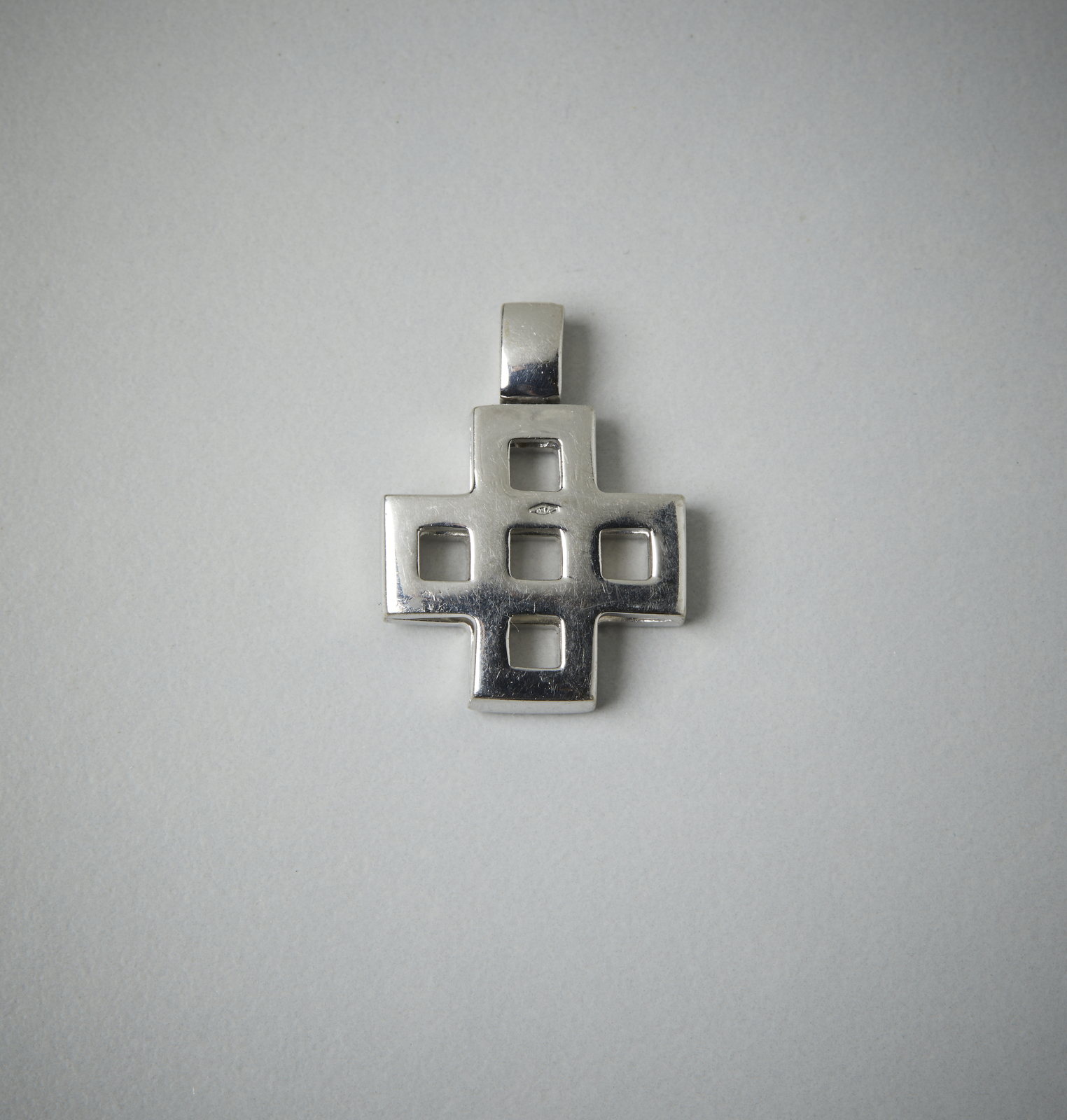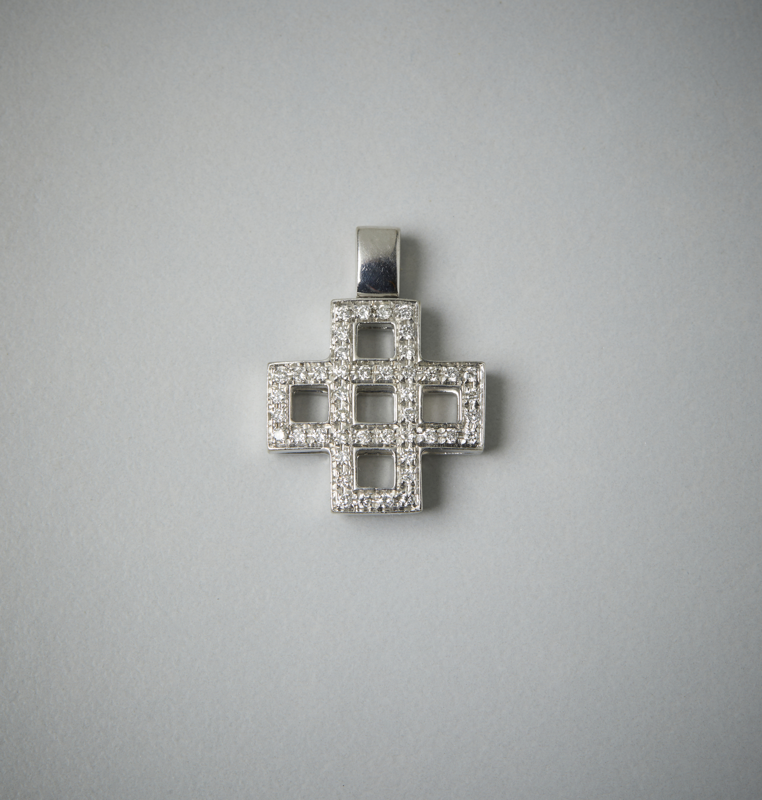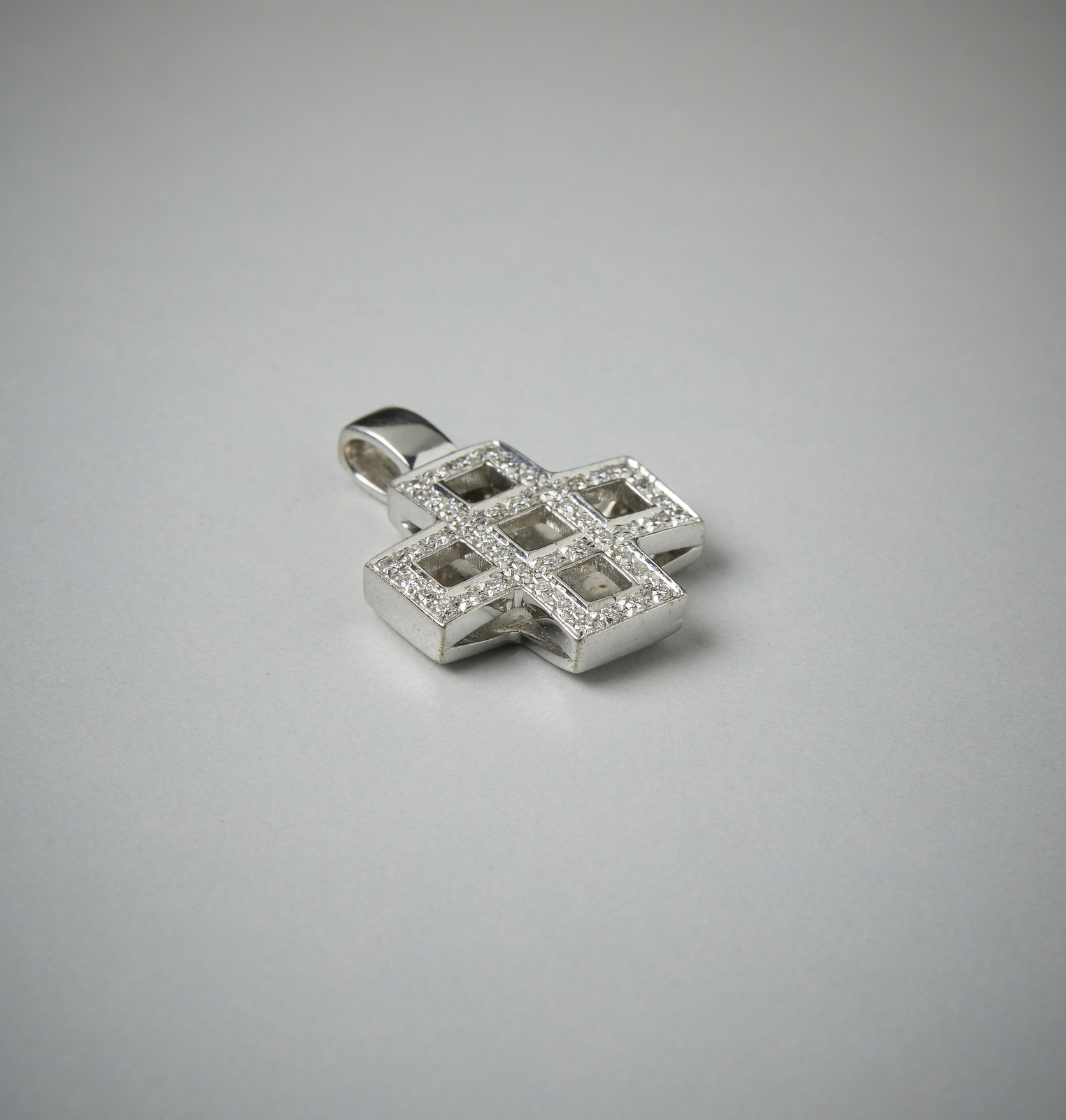 . Croce in oro bianco 750/1000 con pavè di diamanti bianchi di 0.80 ct ca.