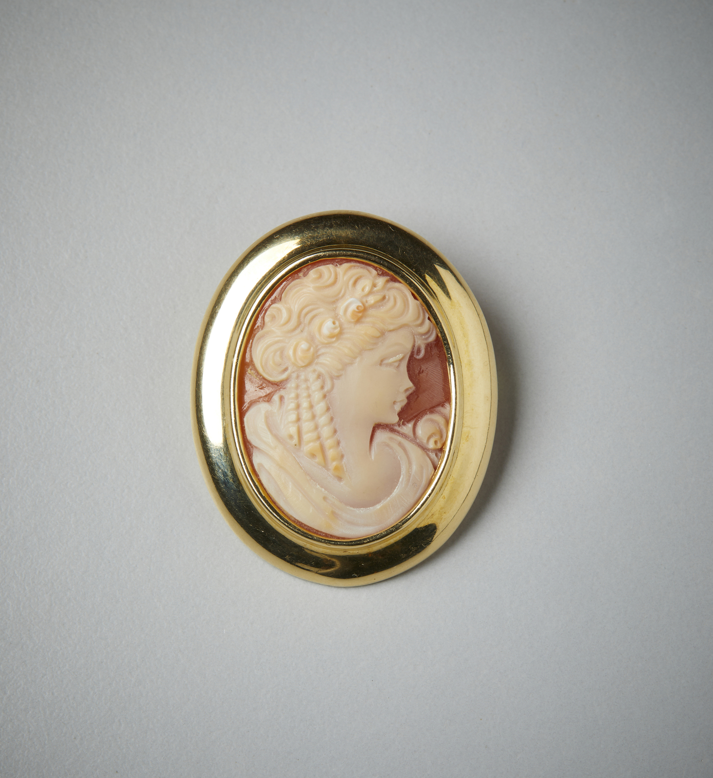 . - Spilla/ciondolo in oro giallo ovale 750/1000 con cammeo. .