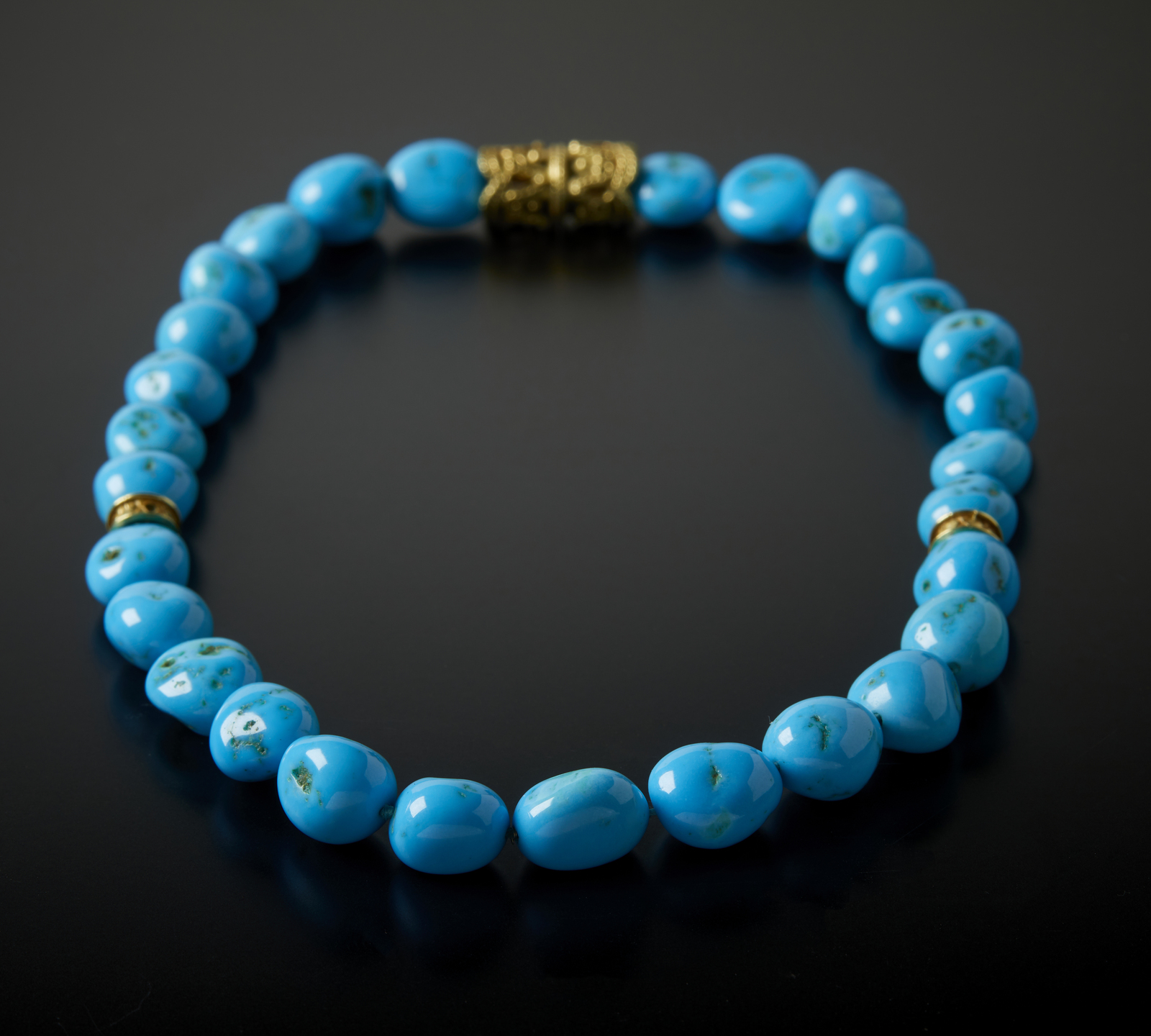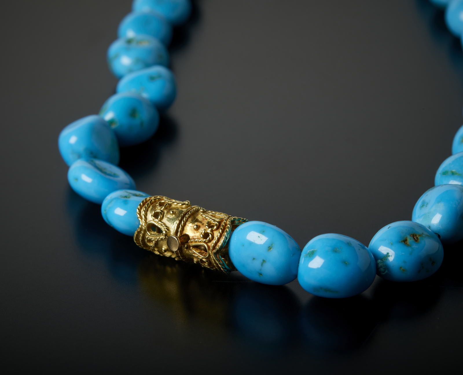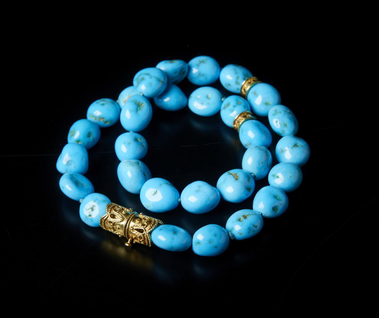 Lot 70 | . - Vezzo in turchese naturale e oro giallo 750/1000.