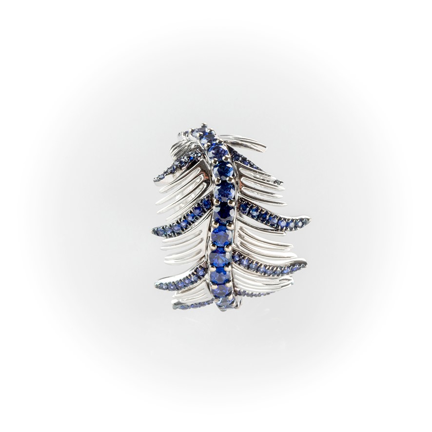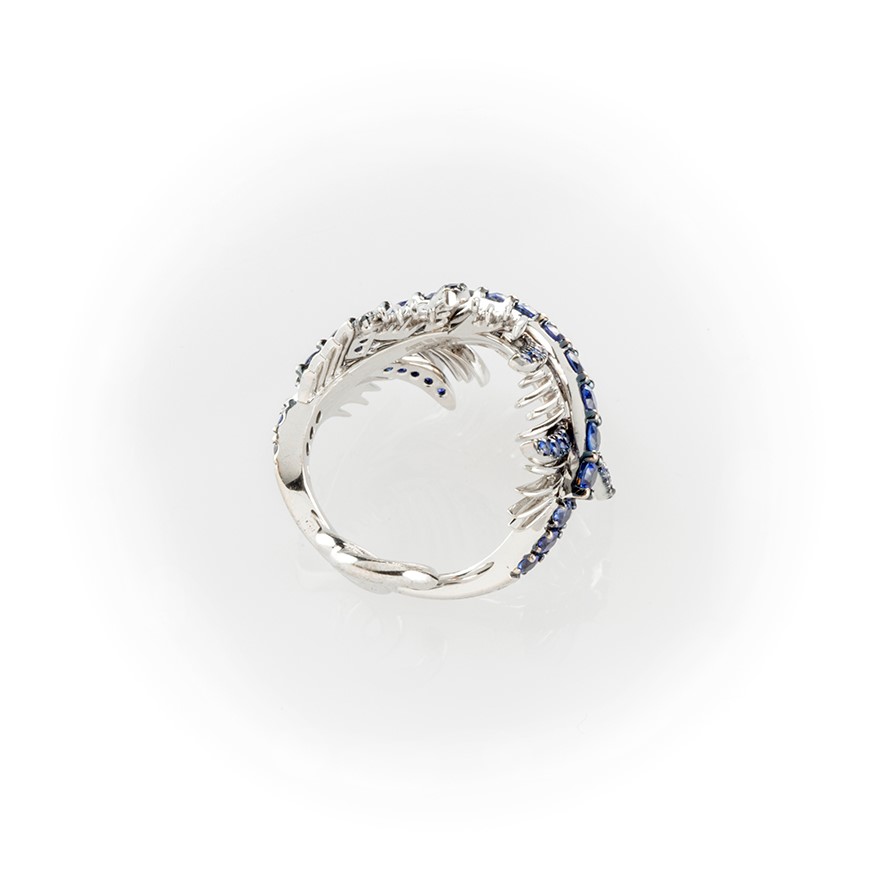 Particolare anello Gismondi in oro bianco e zaffiri blu taglio rotondo con inserti mobili