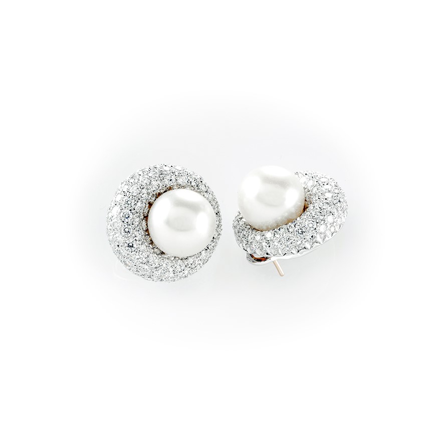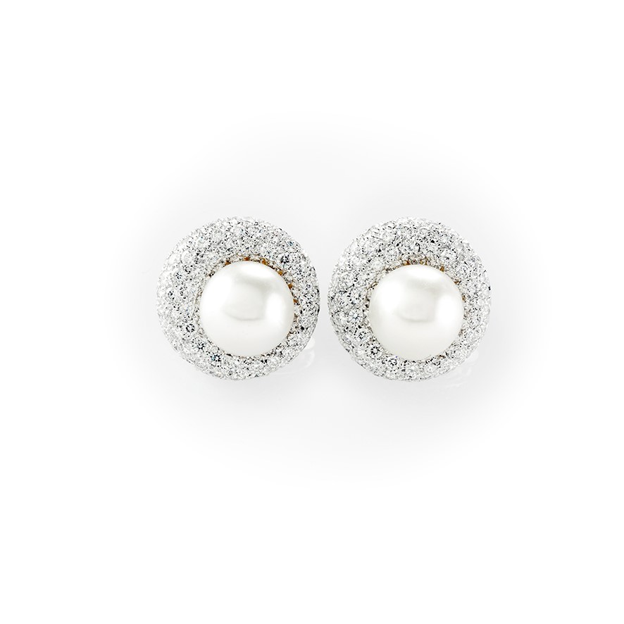 Orecchini in oro bianco Recarlo con grande perla australiana su un'importante pavè di diamanti taglio brillante.
