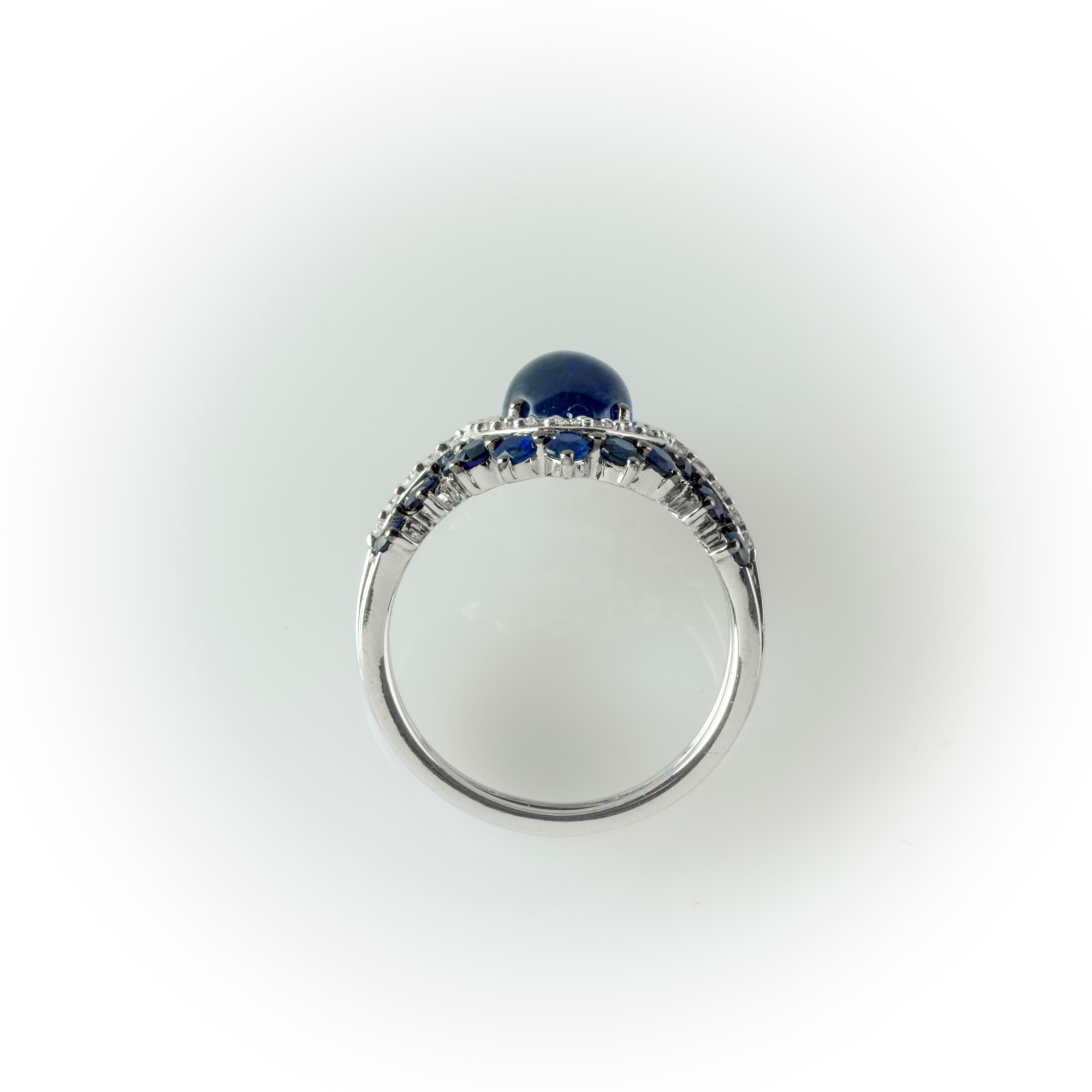 Lot 92 | Anello Recarlo in oro bianco con cabochon centrale di zaffiro blu e zaffiri di contorno, con diamanti bianchi taglio brillante