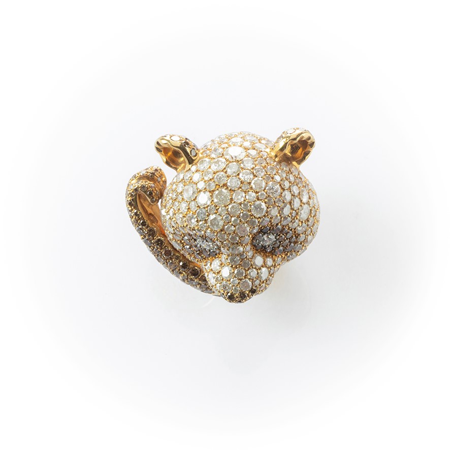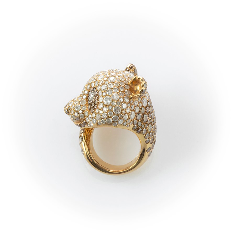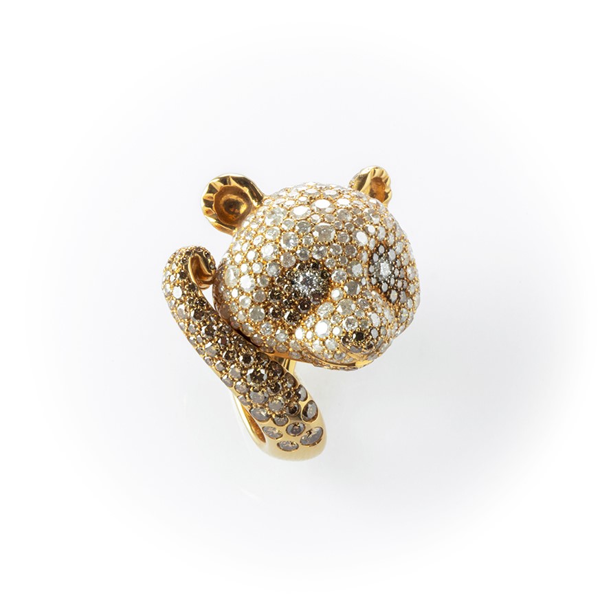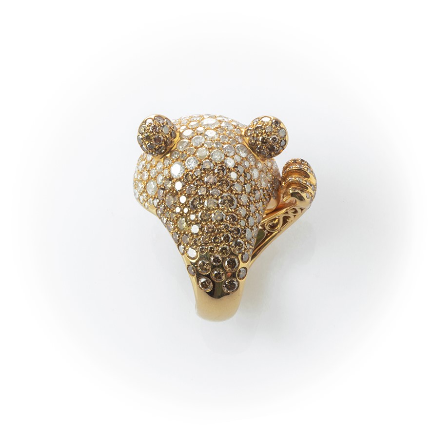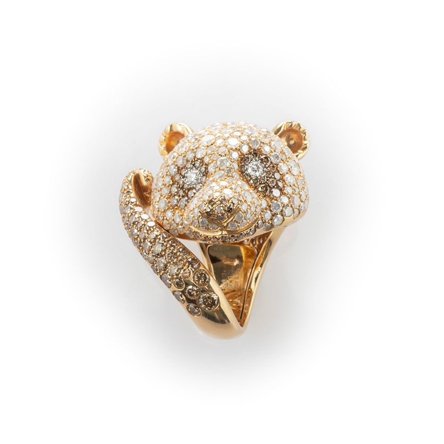 Anello in oro rosa Crivelli Panda con particolari diamanti ice, fancy brown e bianchi taglio brillante