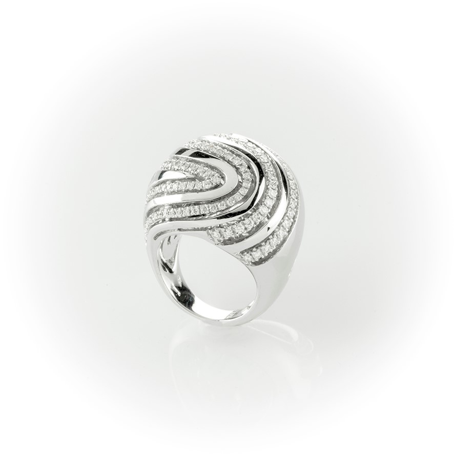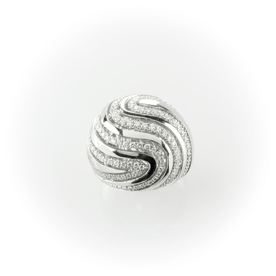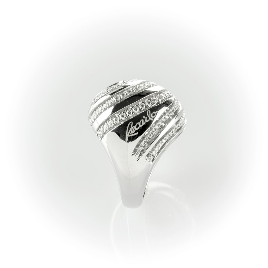 Anello a fascia Recarlo realizzato in oro bianco con fantasia di diamanti bianchi taglio brillante