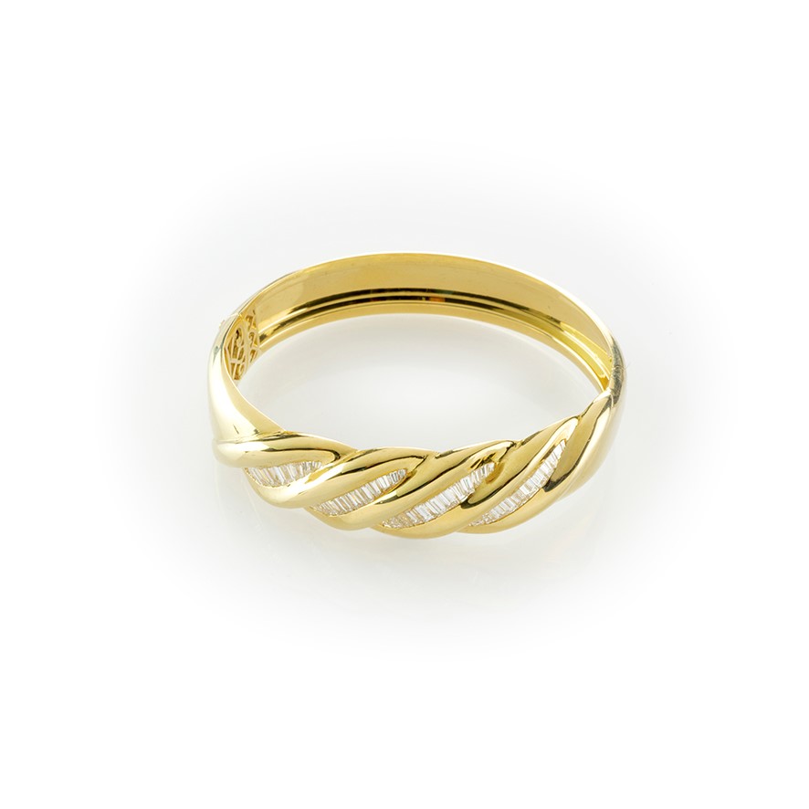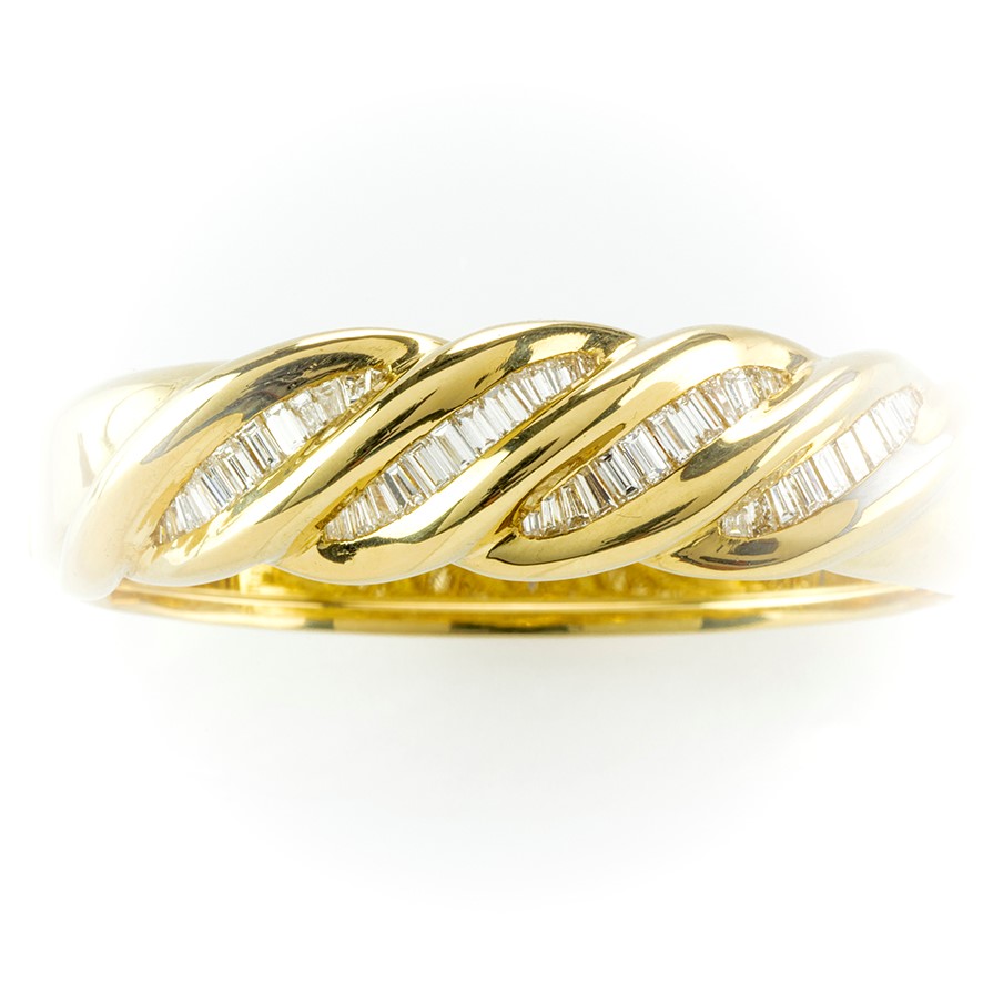 Bracciale rigido Salvini in oro giallo 18 kt e diamanti taglio baguette.