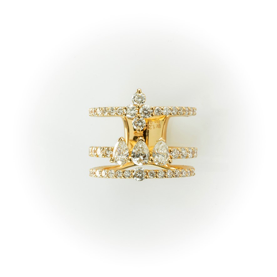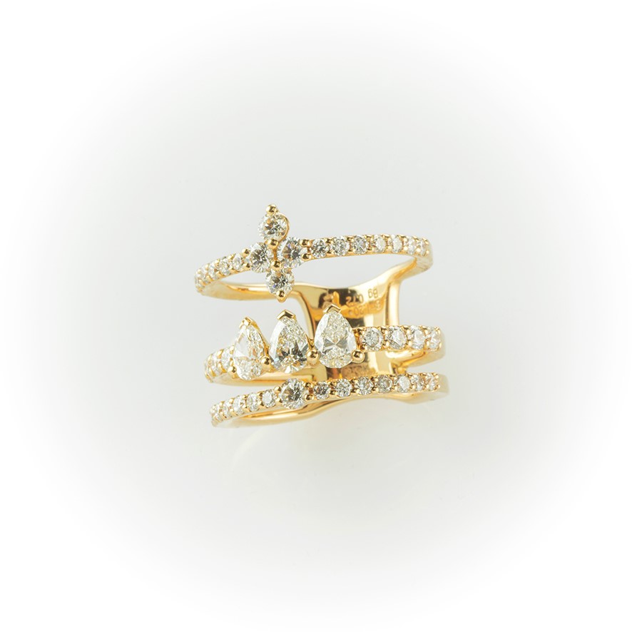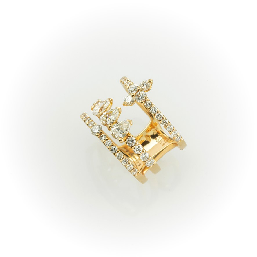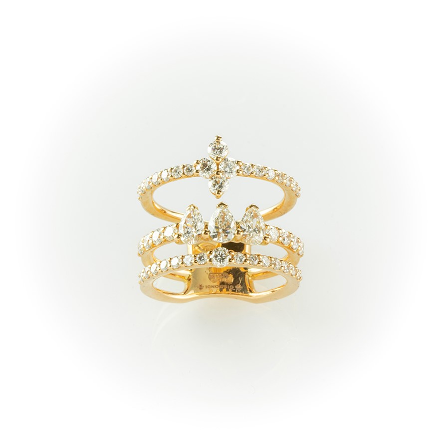 Anello a fascia Gismondi in oro rosa e diamanti bianchi taglio brillante e goccia