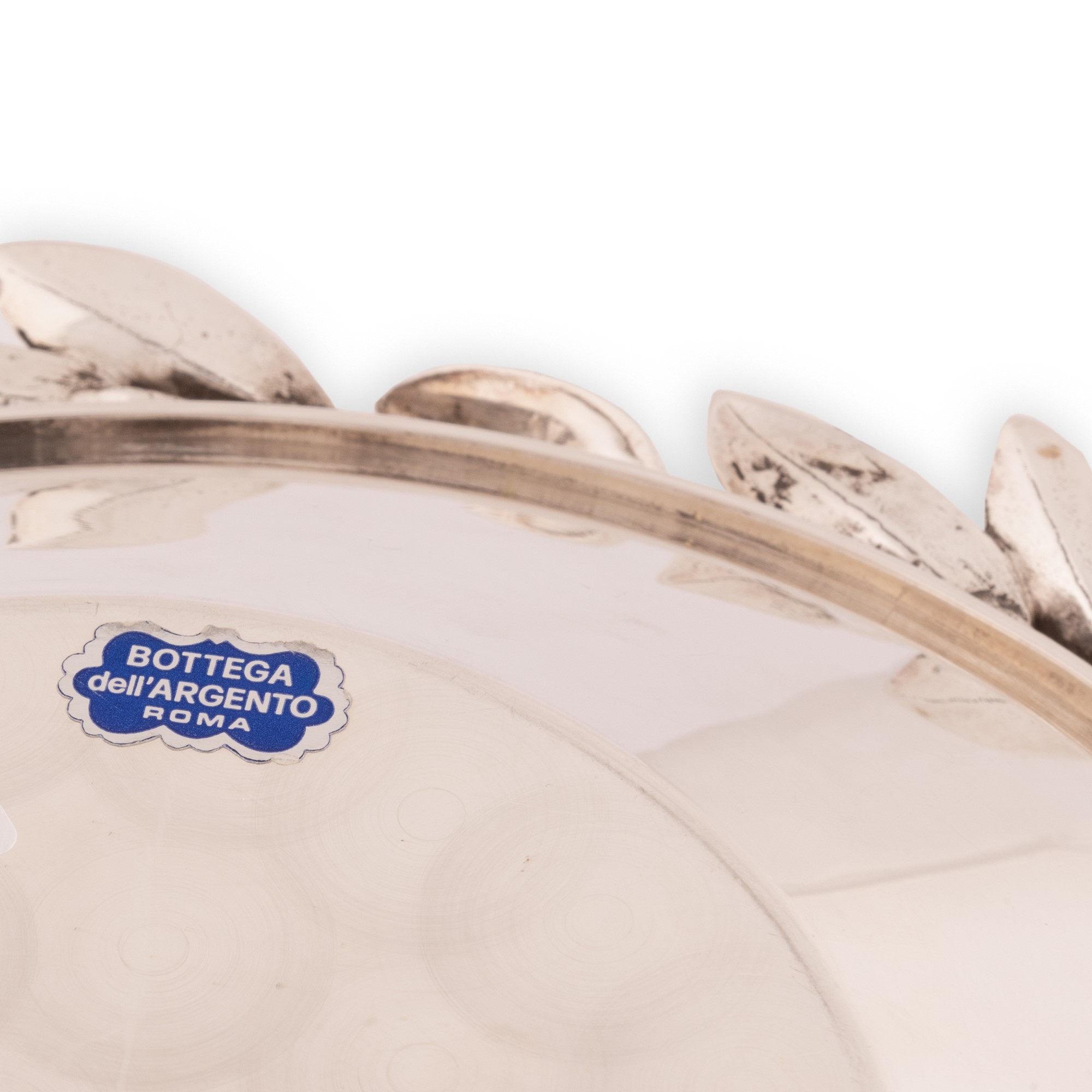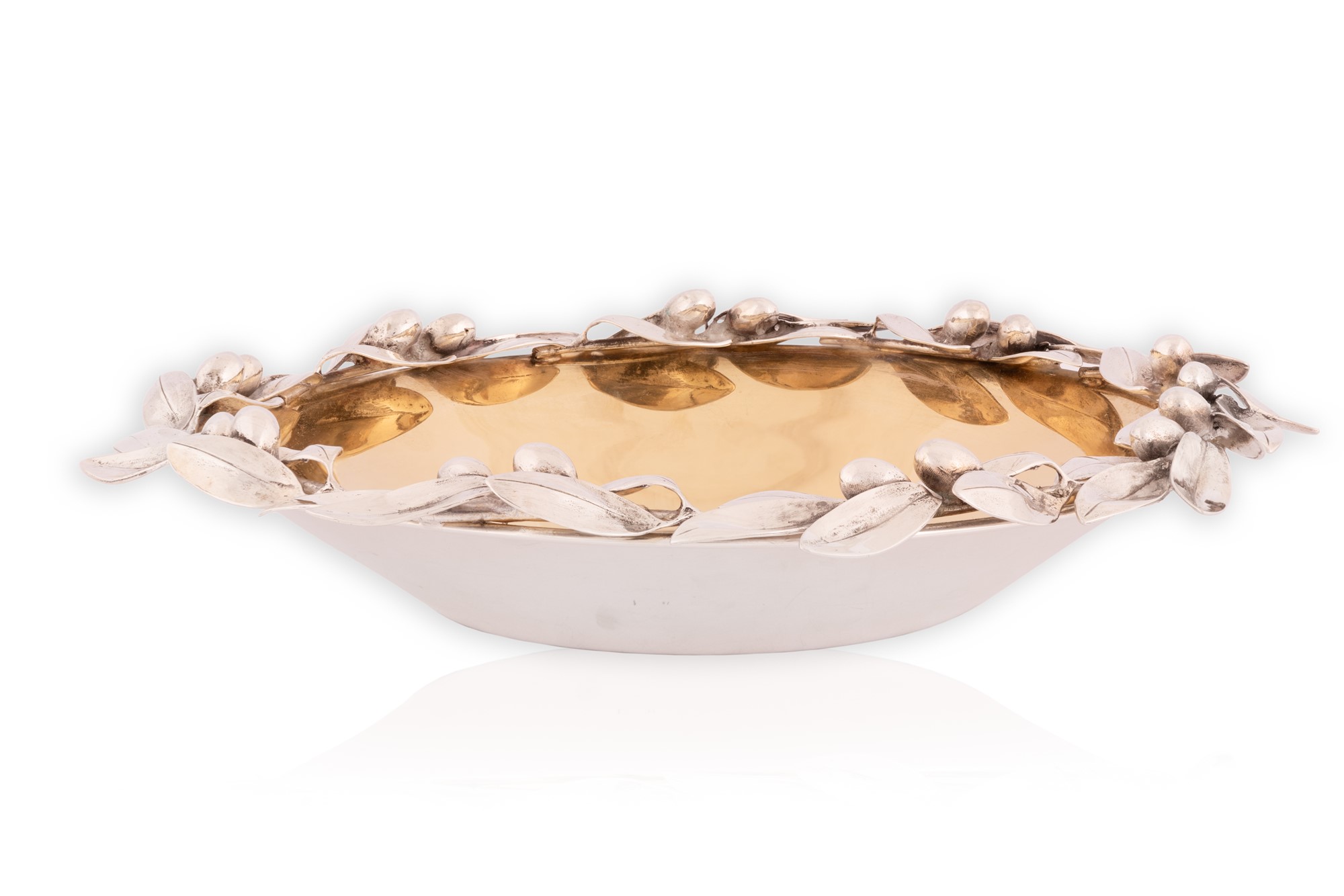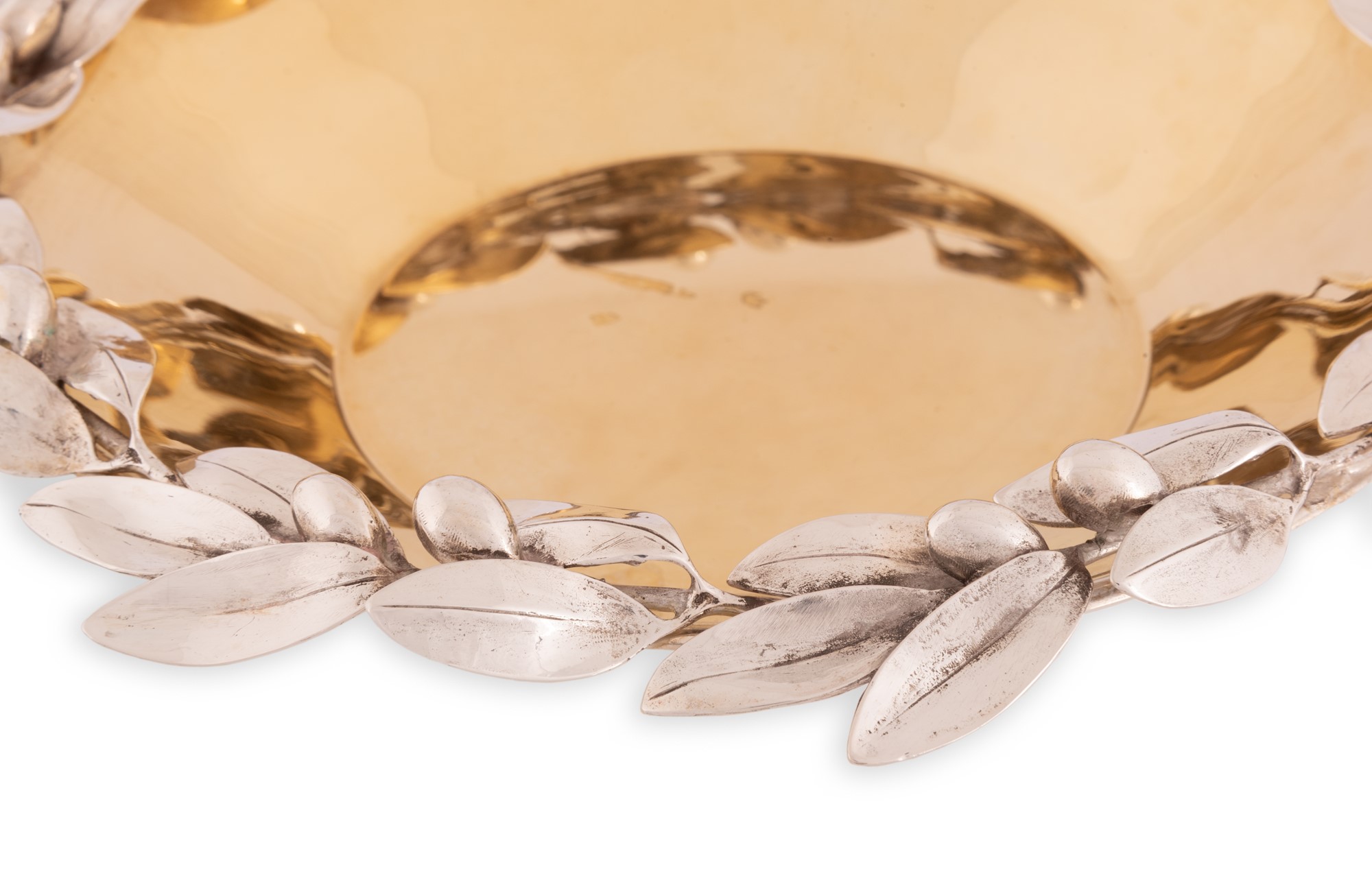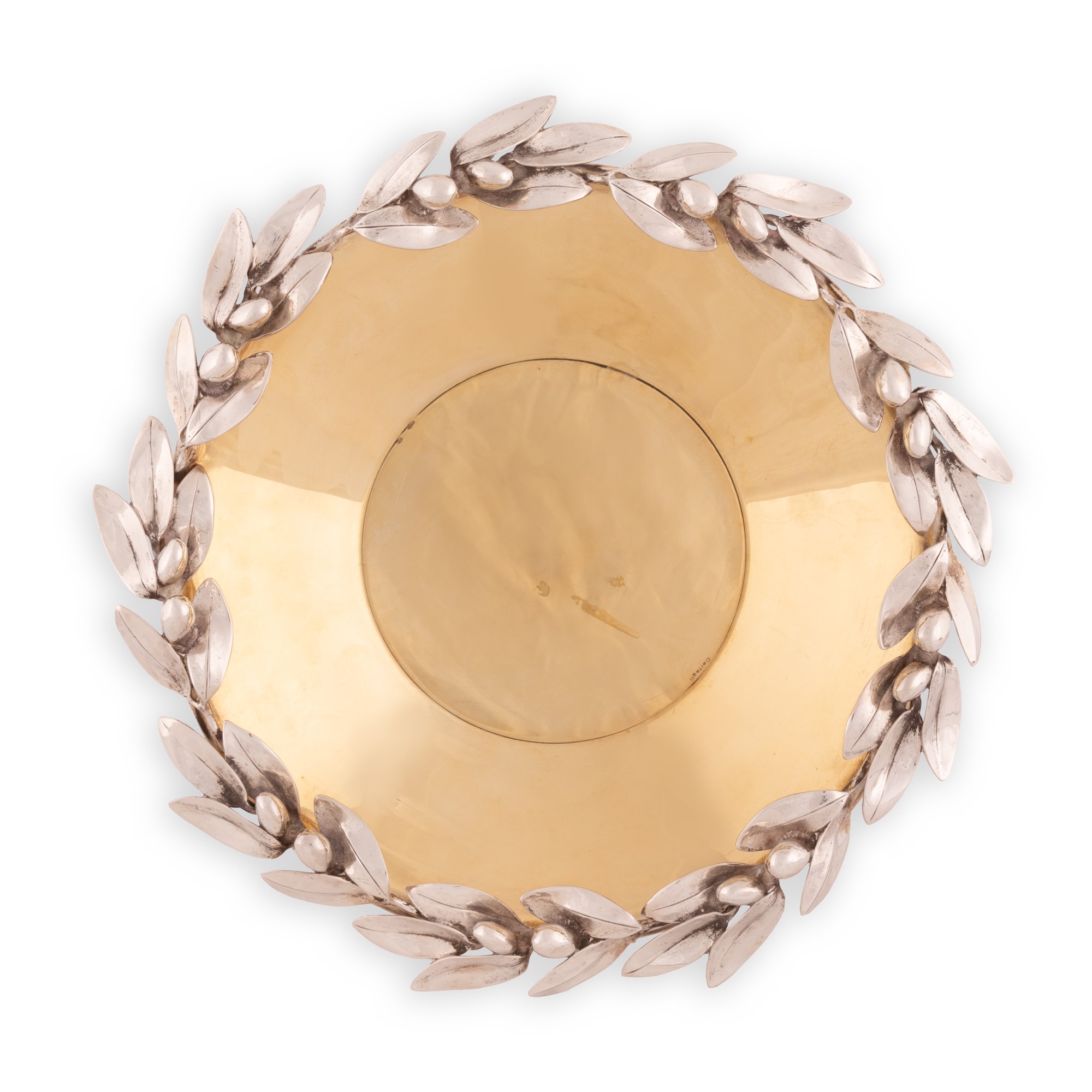 Centrotavola in argento Cerfagli con interno dorato a vermeil e bordo decorato a ramo d'ulivo