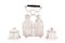 Lotto di oliera Sheffield composta da 4 flaconi in cristallo con manico in legno ebanizzato e due salierine in Sheffield con manico in osso