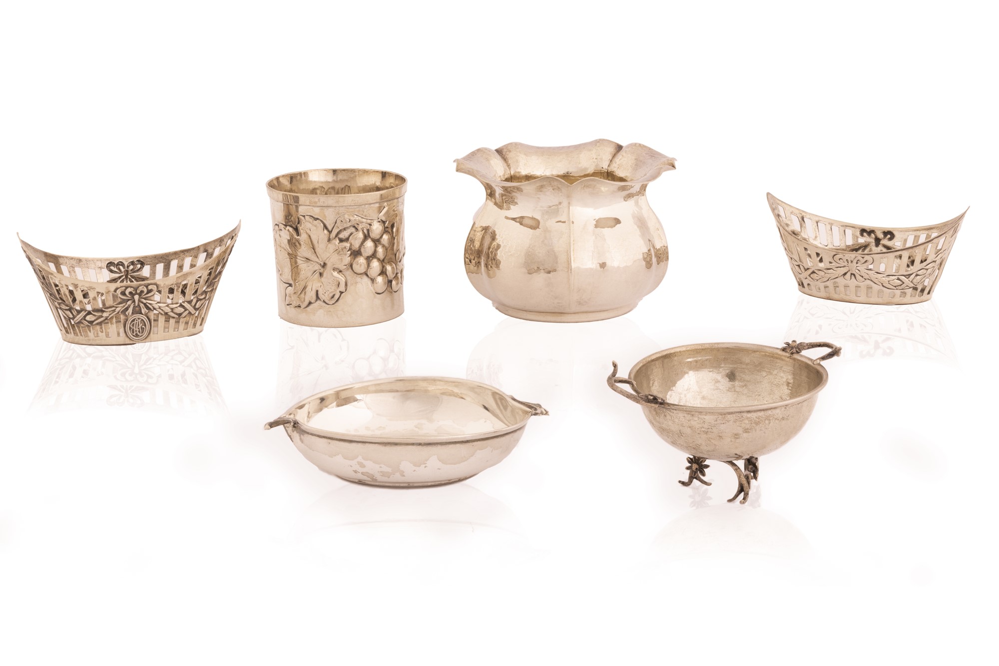 g 250 Composto da caspeaux, due barchette, un bicchiere sbalzato e due piccole ciotoline