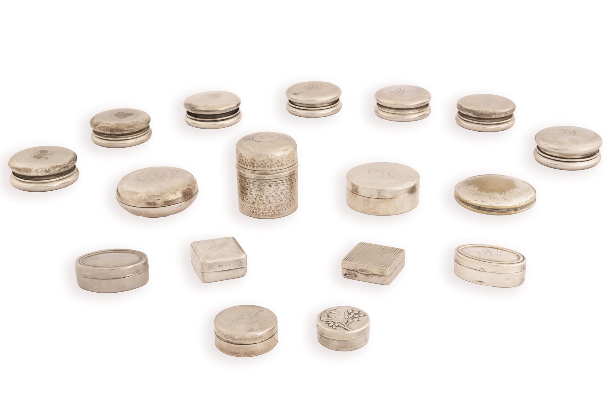 Lotto di 17 piccole scatole in argento di varie dimensioni