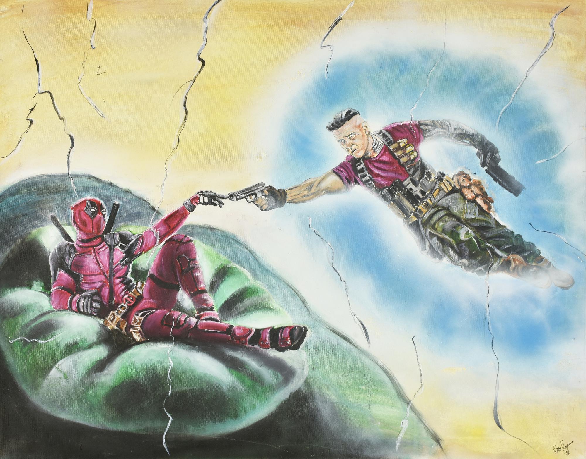 Kurt Vincenzi LA CREAZIONE DI DEADPOOL olio su tela, cm 80x100 firma sul...