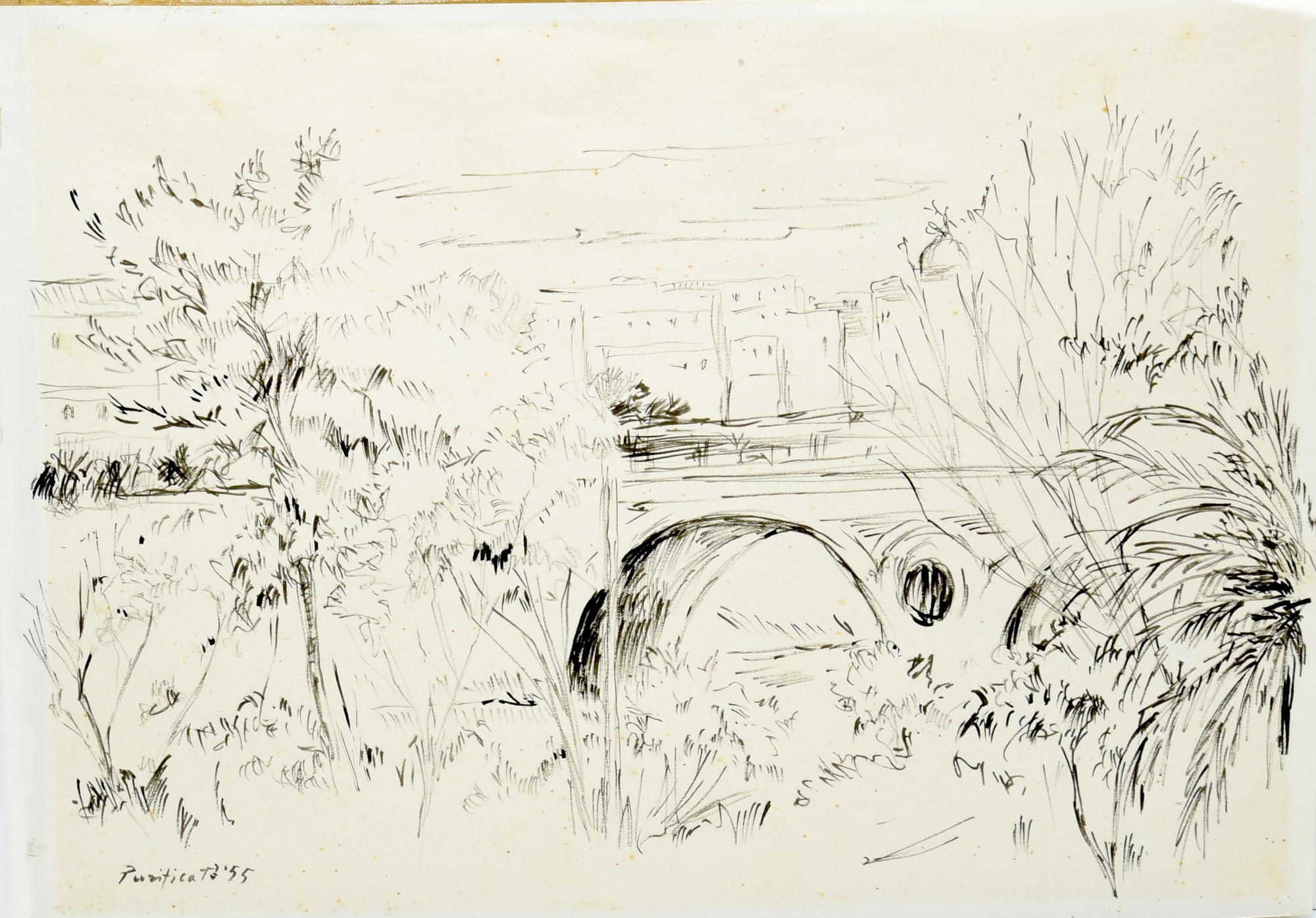 Domenico Purificato VEDUTA pennafeltro su carta, cm 24x33 firma e data...