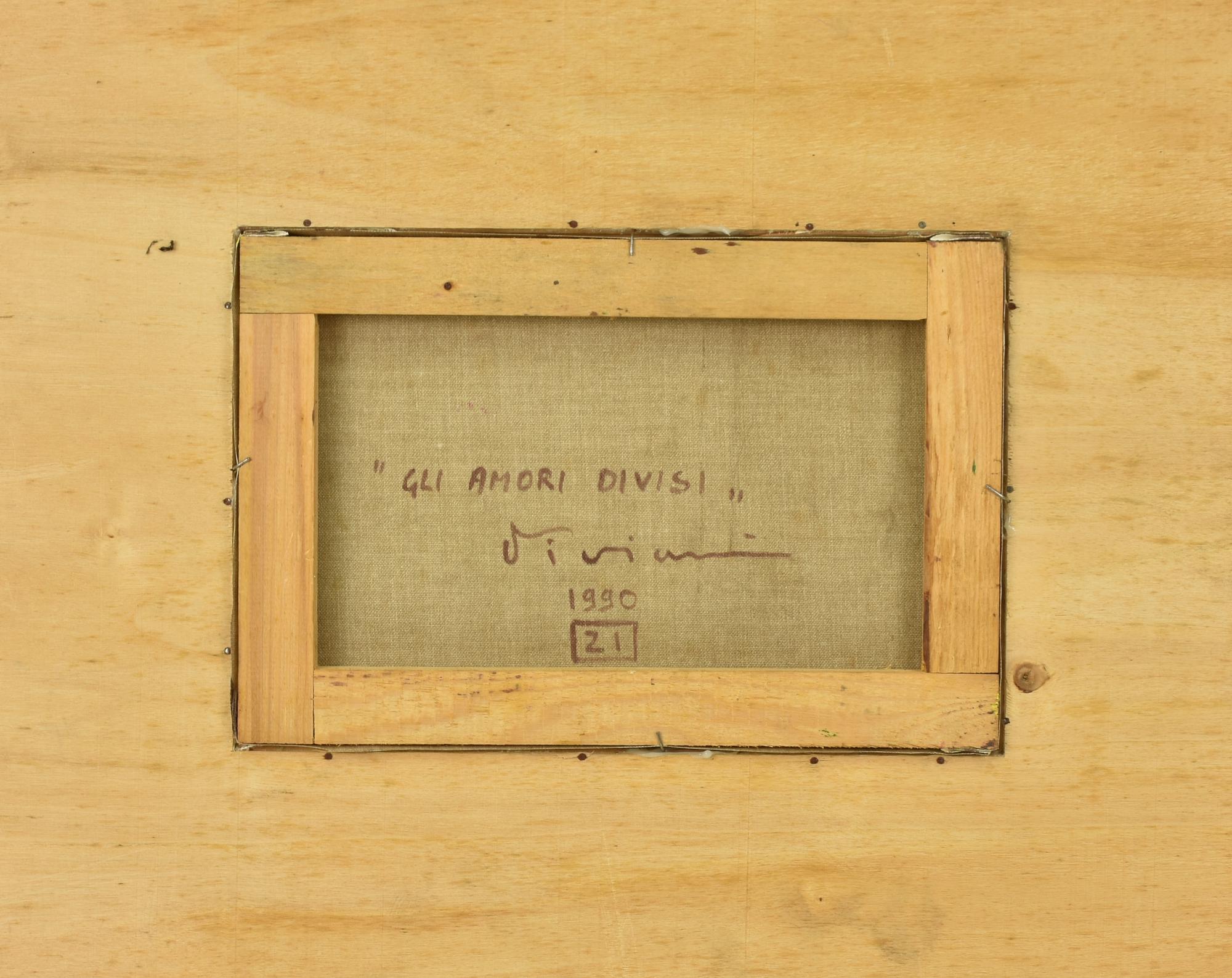 Vanni Viviani GLI AMORI DIVISI acrilico e olio su tela, cm 20x30 firma sul...