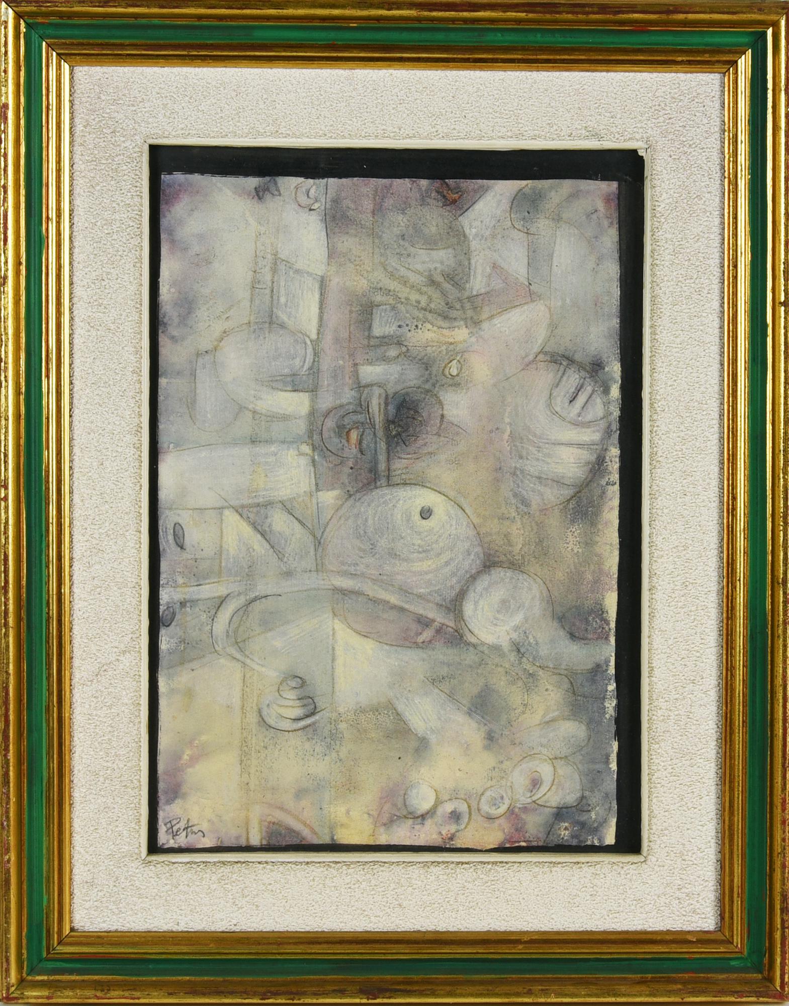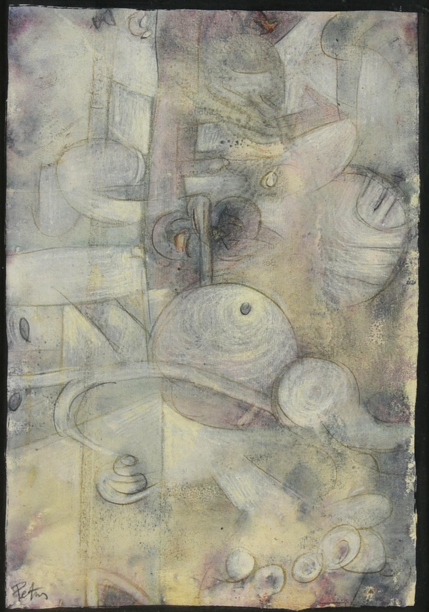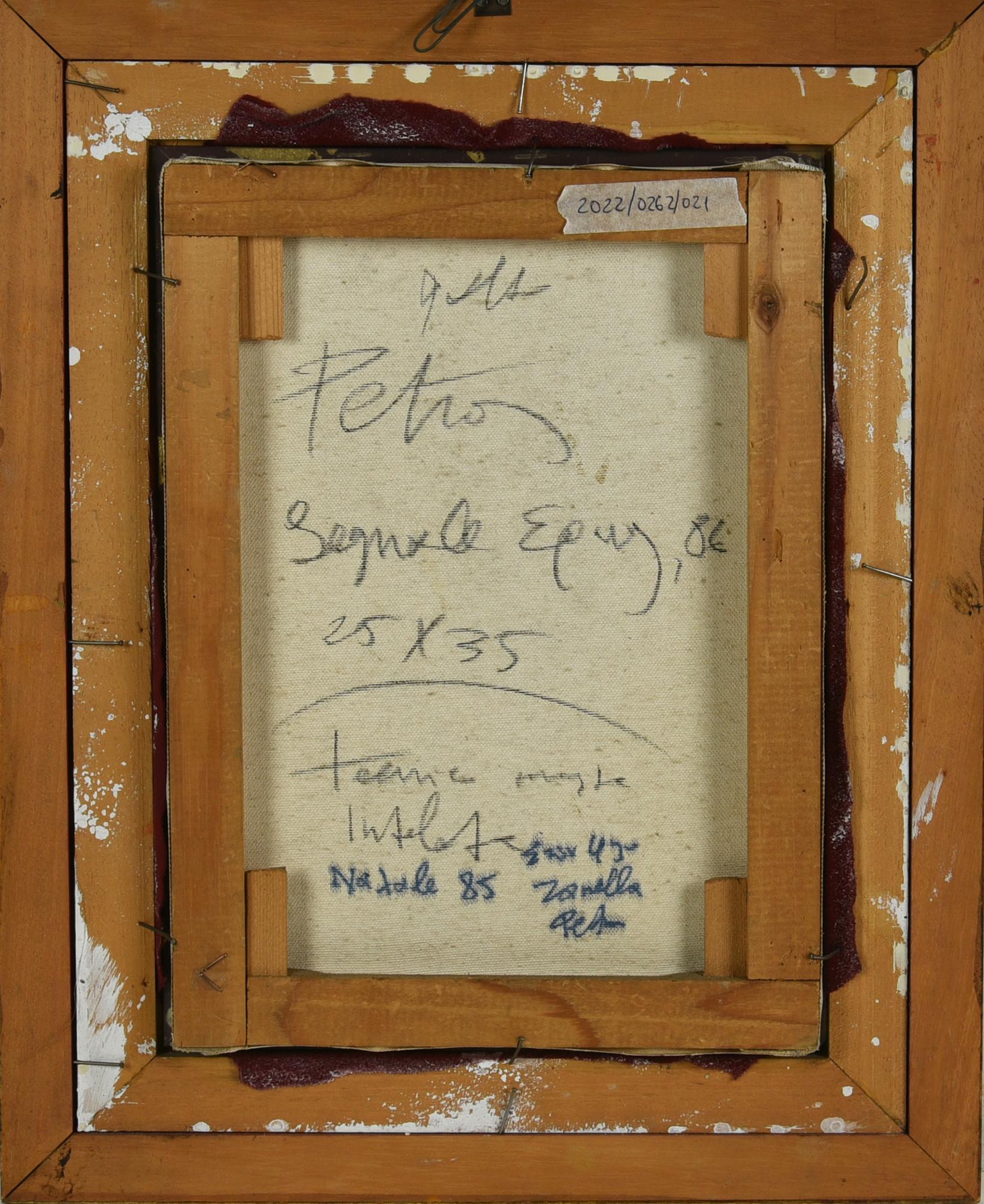 Petros SEGNALE tecnica mista su carta applicata su tela, cm 35x25 firma sul...