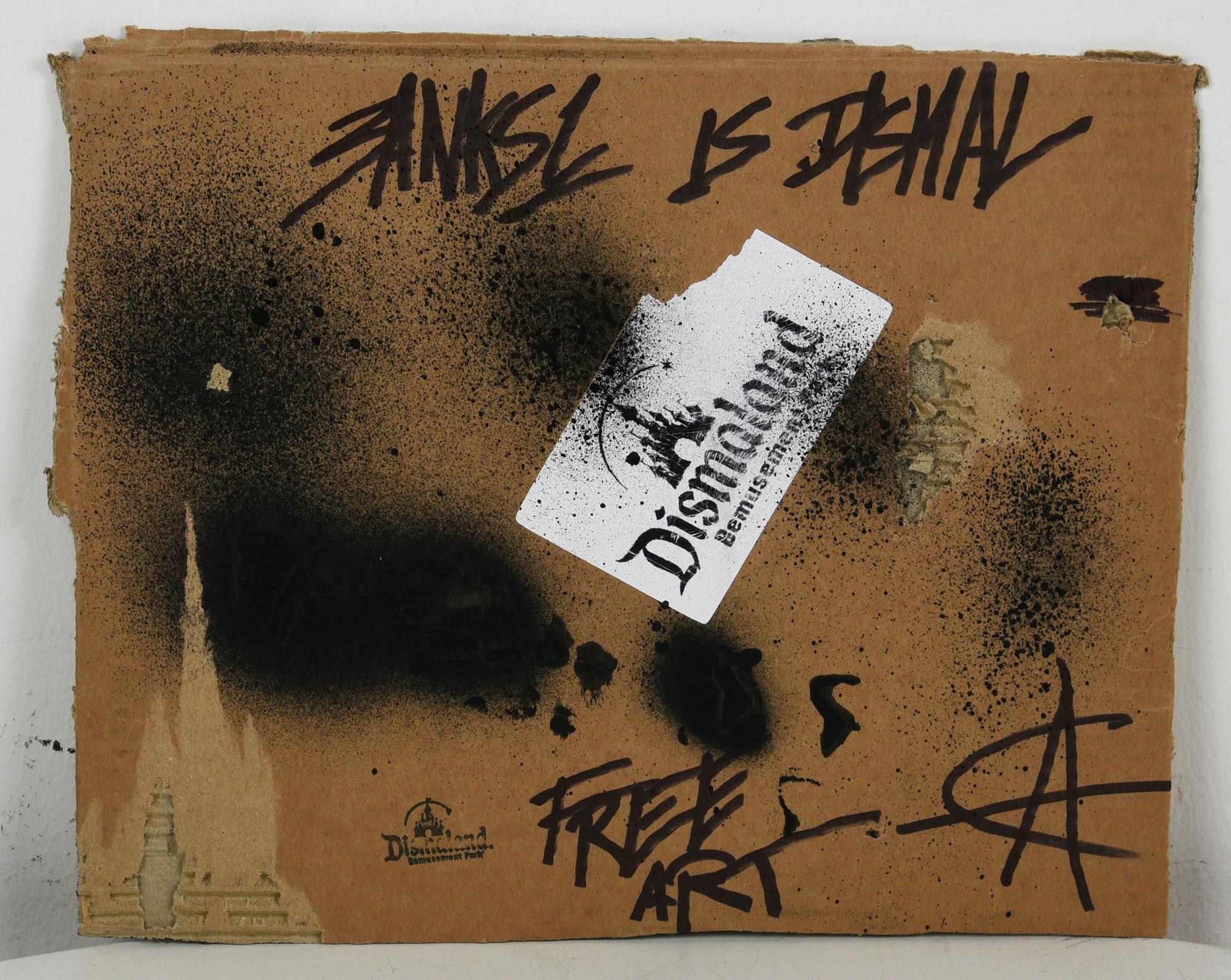 sul retro: timbro ed etichetta Dismaland, iscritto "Bansky is Dismal"