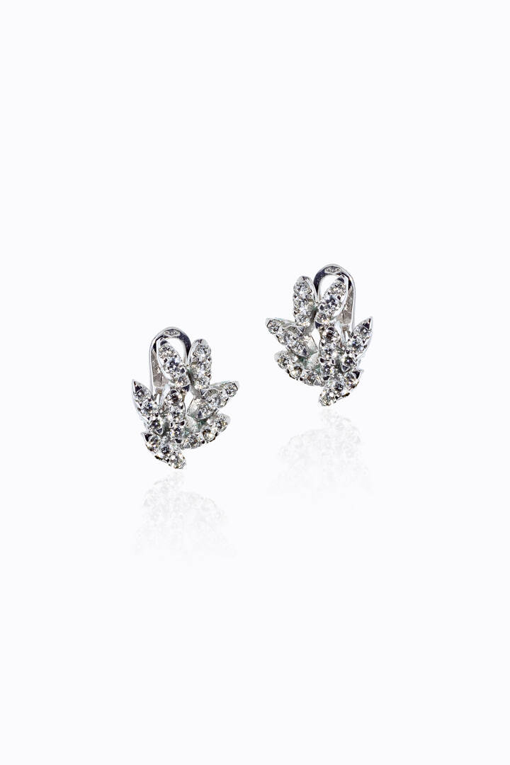 in oro bianco, a forma di foglie stilizzate in diamanti taglio brillante per totali ct 0,82 ca, probabile colore G-H, purezza IF-VVS