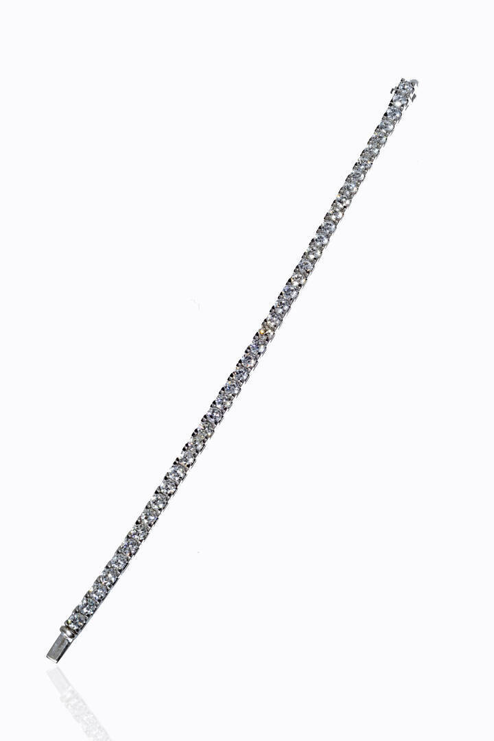 in oro bianco, modello tennis, con diamanti taglio brillante per totali ct 12,36; probabile colore G-H, purezza IF-VVS