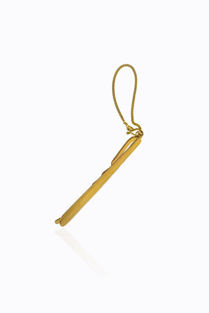 in oro giallo, a barretta, lavorata ad incisioni geometriche