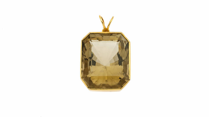 Previous Lot 192 Next Sant’Agostino - Corso Tassoni 56, 10144 Torino ASTA 214 GIOIELLI Prima tornata Monday 5 December 2022 hours 16:00 (UTC +01:00) CIONDOLO CIONDOLOPeso gr 30,6in oro giallo con grande quarzo fumé taglio rettangolare