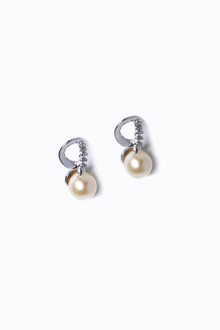 in oro bianco, a lobo, con due perle giapponesi del diam. di mm 6 ca e diamanti taglio brillante per totali ct 0,06 ca,