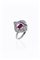 in oro bianco, sommità a rombo, al centro rubino taglio ottagonale di ct 0,80 ca, diamanti taglio brillante per totali ct 0,30 ca