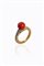 in oro giallo al centro sfera rosso mediterraneo del diam. di mm 9,3 ca; diamanti brown taglio brillante per totali ct 1,80 ca,