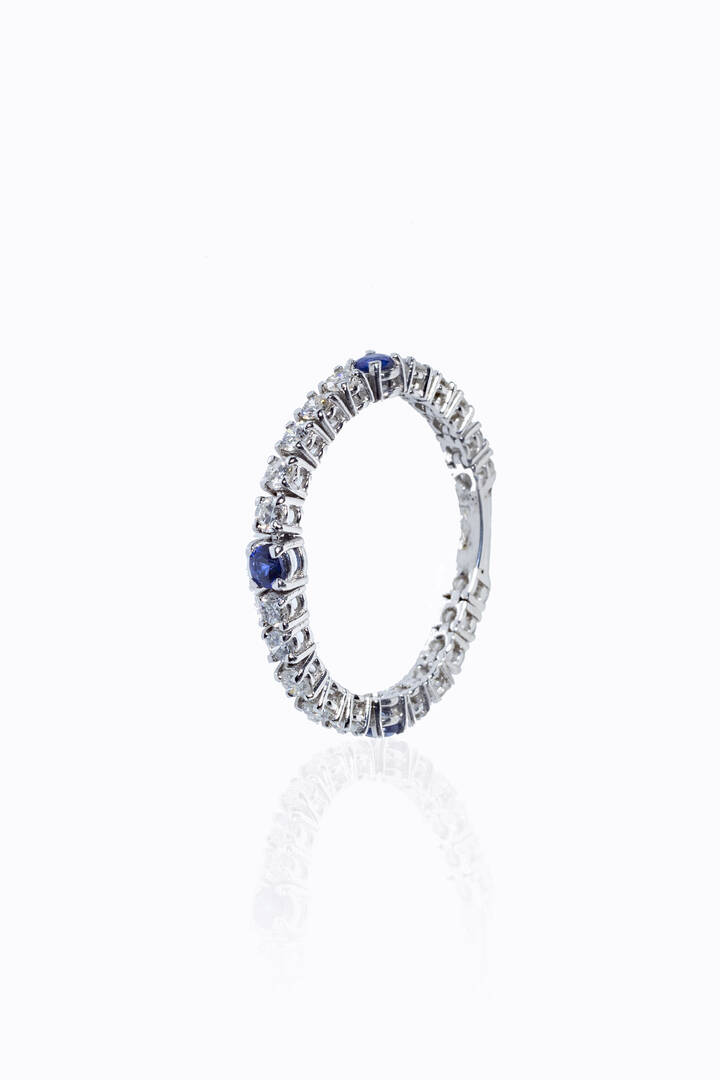 semirigida, in oro bianco, con diamanti taglio brillante per totali ct 0,80 ca e tre zaffiri taglio rotondo