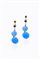 pendenti in oro rosa, con dischi di varie misure di angelite; sfere in oro rosa e ai lobi mezze sfere in ematite rodiata