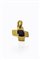 Ciondolo in oro giallo, firmato "Pomellato", a forma di croce con al centro granato cabochon