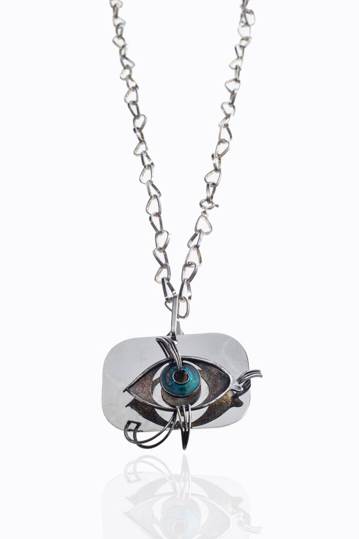 Catena con ciondolo in argento 925/1000, a forma di occhio stilizzato con smalto verde