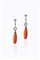 in oro bianco14 Kt con due gocce pendenti di corallo color salmone; diamanti taglio 8/8 per totali ct 0,30 ca