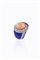 in oro bianco 14 Kt, sommità bombata con al centro corallo rosa taglio ovale cabochon; ai lati inserti in lapislazzuli; diamanti taglio brillante per totali ct 1,0 ca