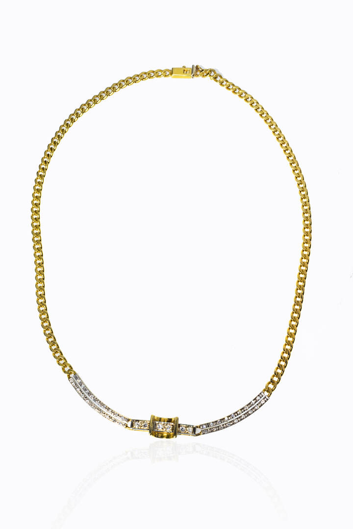 in oro giallo con al centro tre segmenti in oro bianco in diamanti taglio 8/8 per totali ct 0,50 ca