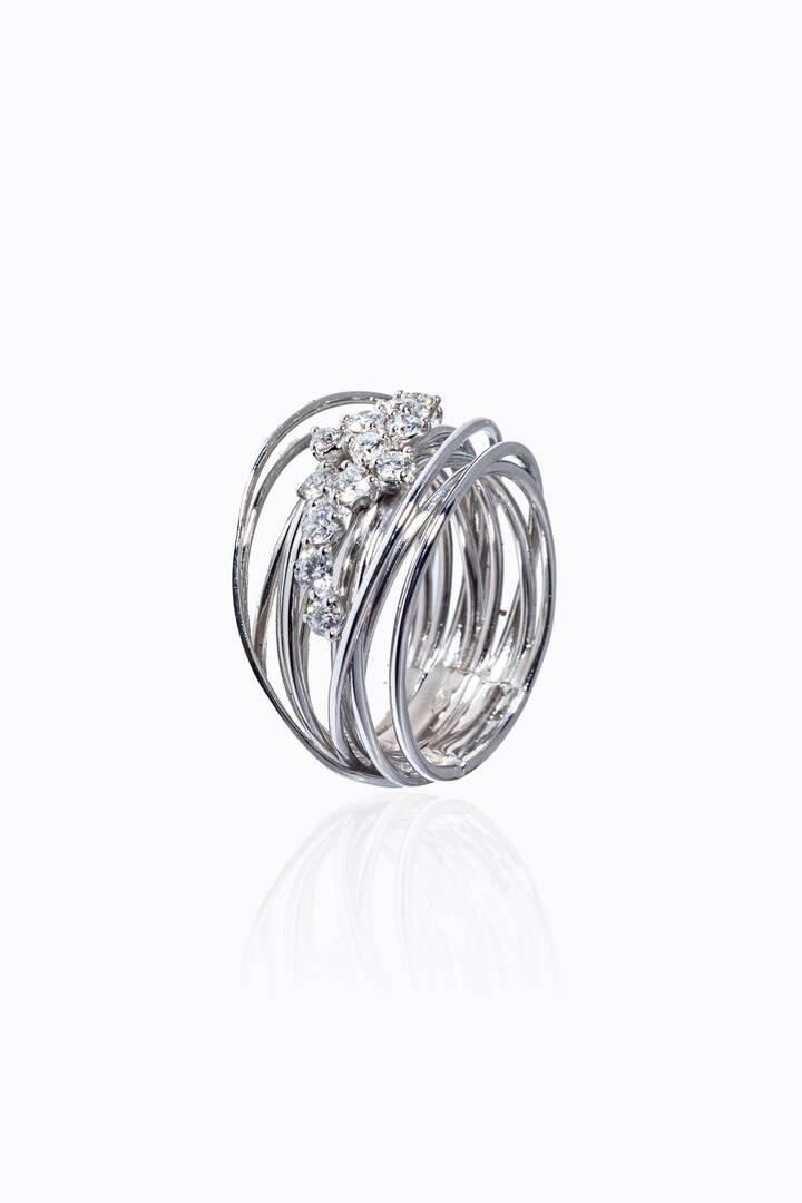 in oro bianco, sommità a fili intrecciati, trattenenti al centro diamanti taglio brillante per totali ct 0,61 ca, probabile colore G-H, purezza IF-VVS