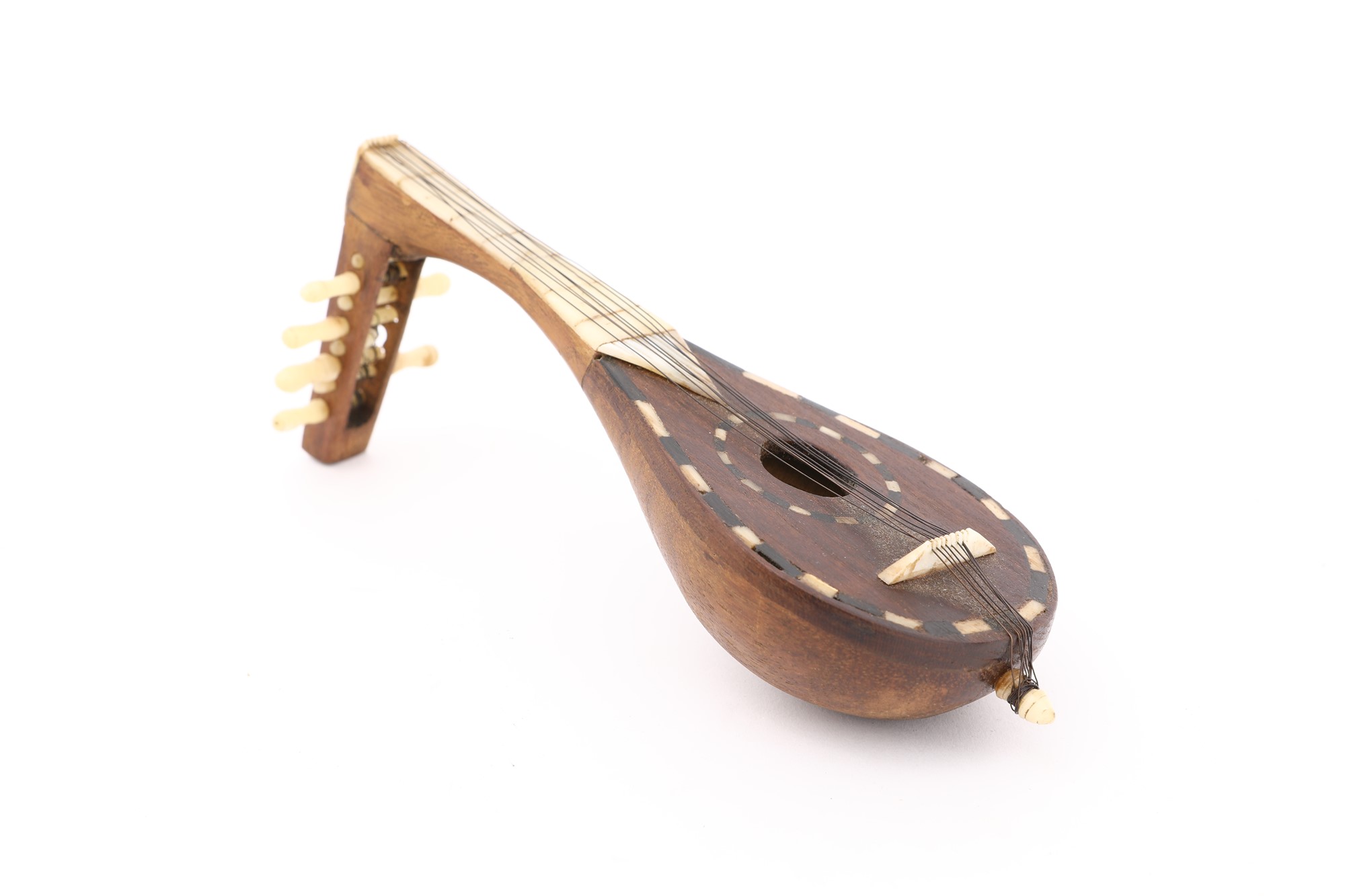 Liuto in legno con inserti in osso e madreperla cm 16x5,7x3 ca.