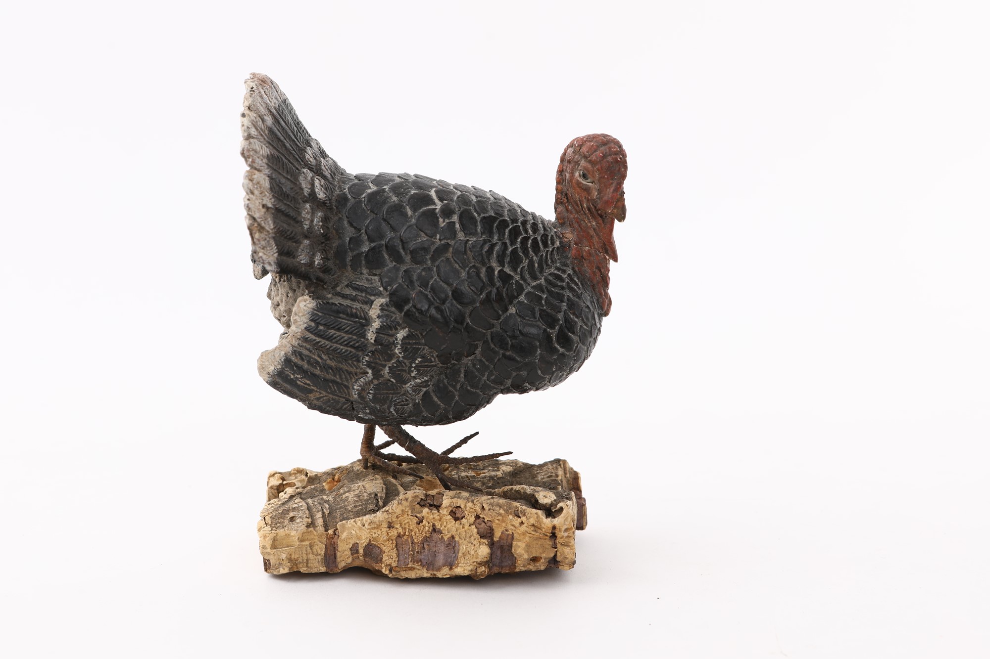 Tacchino in terracotta policroma occhi di vetro, zampe in ferro cm 12,5x11x6 ca.