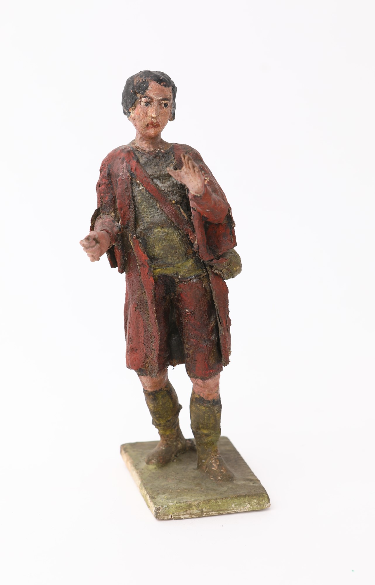 Giovane in terracotta policroma, Sicilia, XIX secolo con giacca rossa...