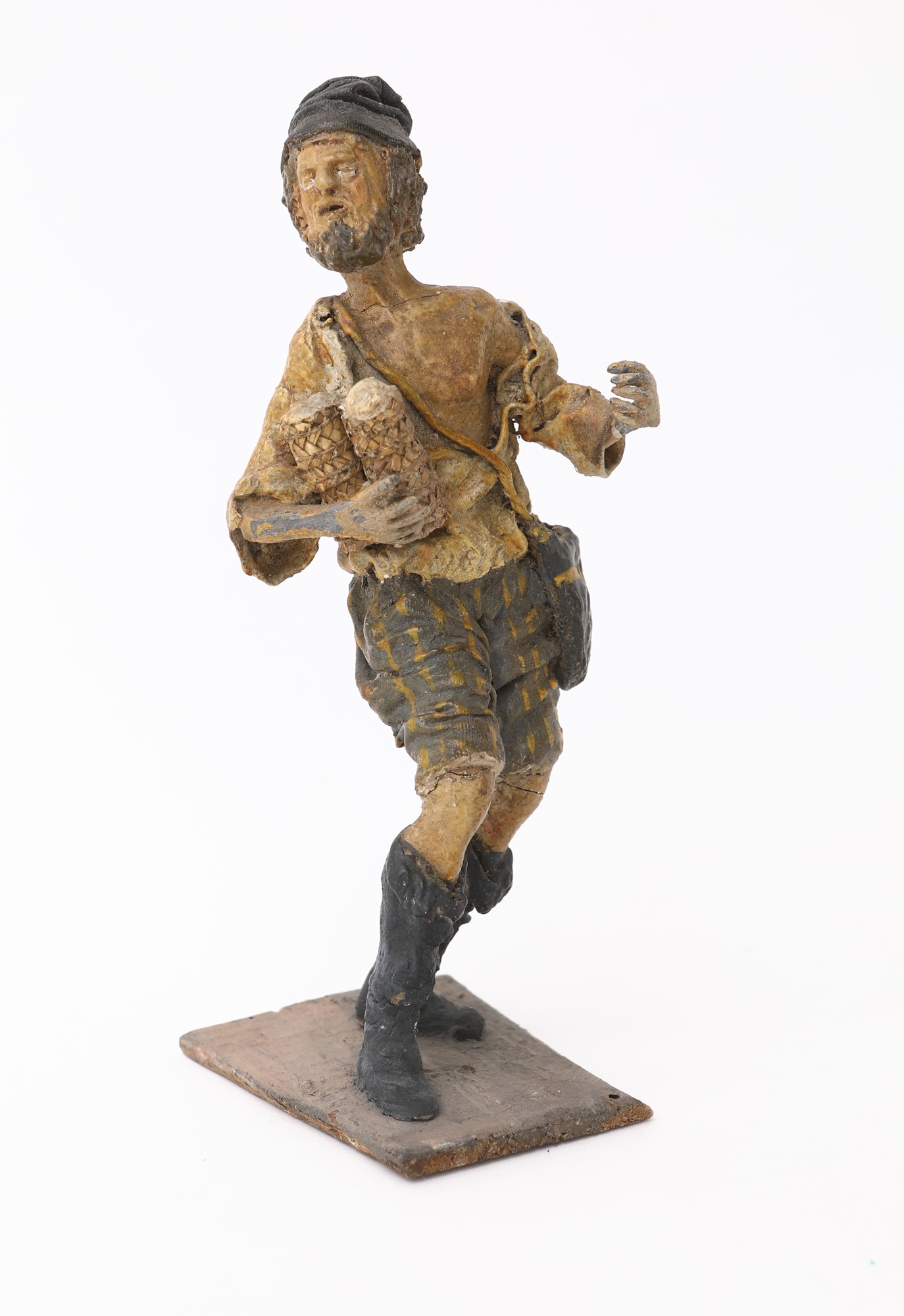 Venditore di formaggi cieco in terracotta policroma, Sicilia, XIX secolo con...
