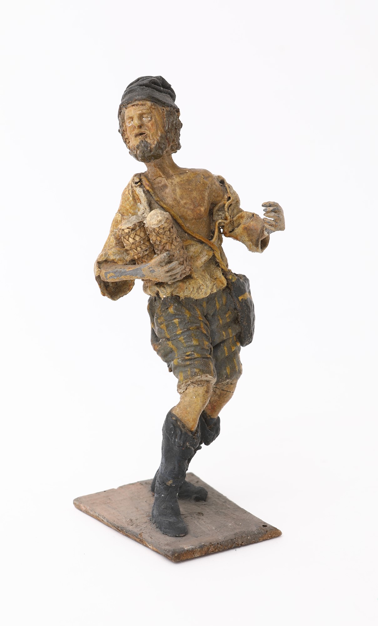 Venditore di formaggi cieco in terracotta policroma, Sicilia, XIX secolo