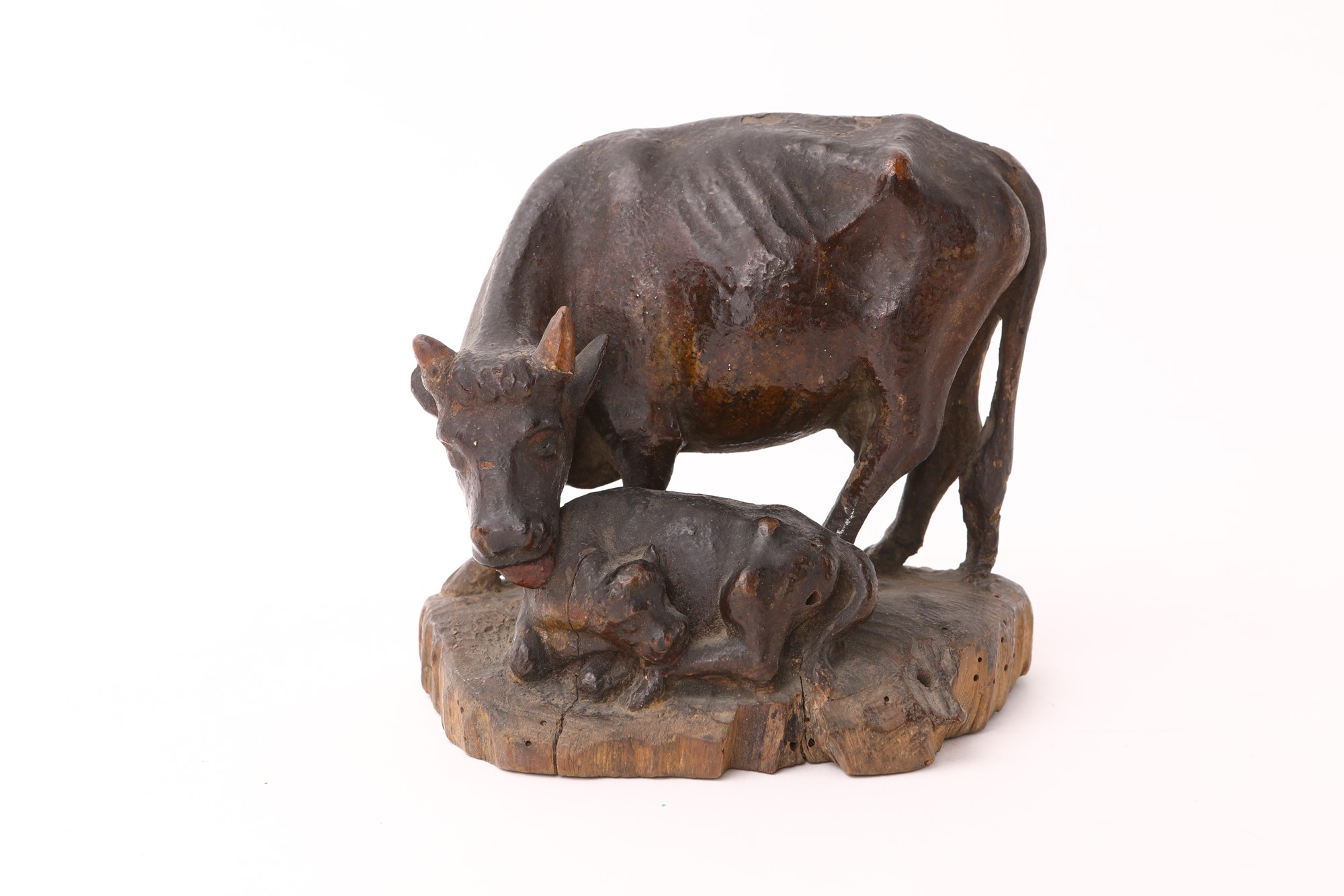 Gruppo in legno policromo composto da mucca e vitello, Sicilia, XIX secolo