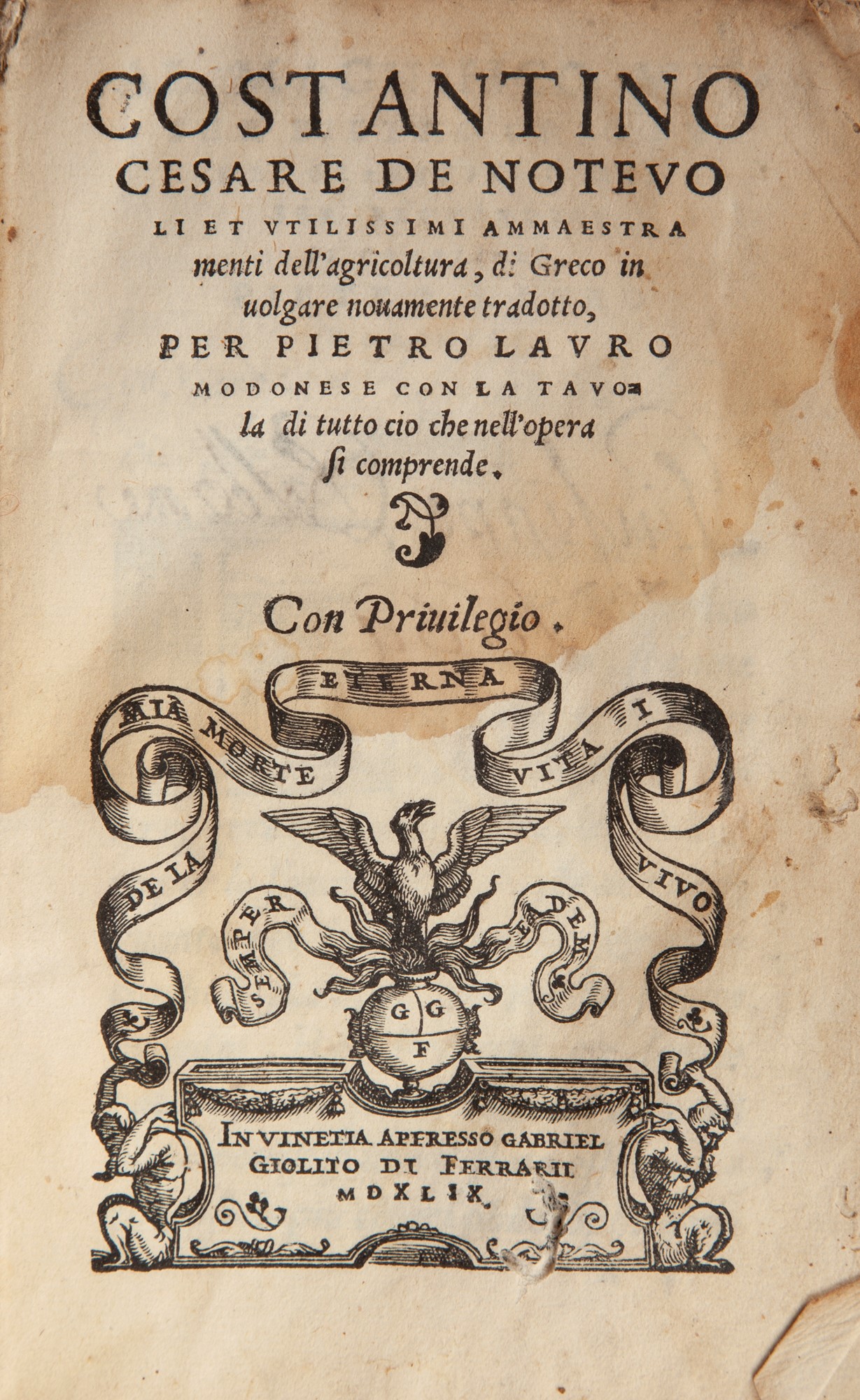 Costantino VII Imperatore d'Oriente. De Notevoli et utilissimi ammaestramenti dell'agricoltura, di Greco in volgare nuovamente tradotto per Pietro Lauro modonese
