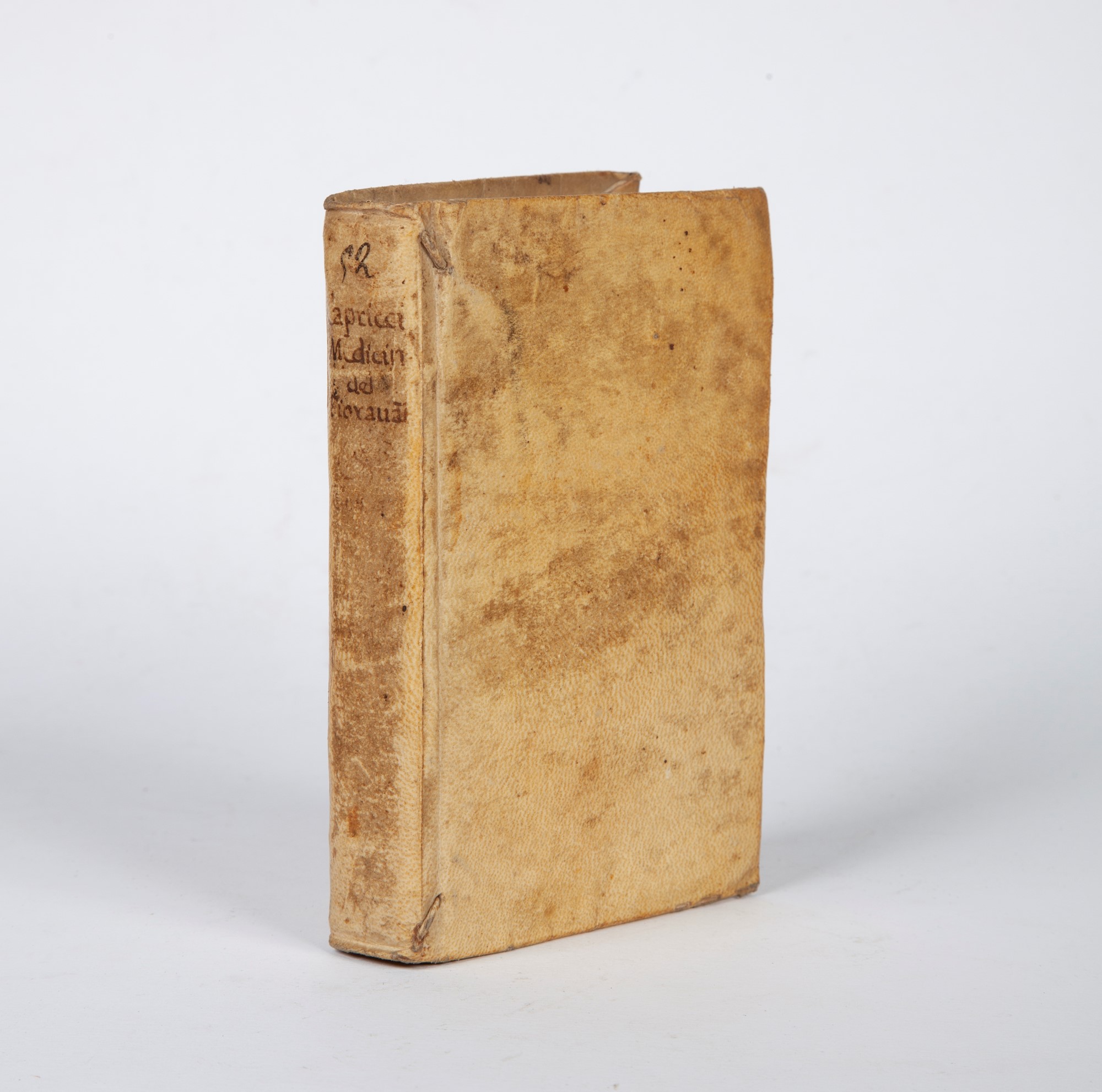 In 16° grande. Edizione seicentesca di questo singolare trattato di medicina empirica che si discosta dalla medicina tradizionale di Ippocrate, Galeno e Avicenna. Interessante il capitolo sui vasi, illustrati in xilografia, utilizzati per distillazione e divisione degli elementi. Legatura in piena pergamena floscia coeva (difetti), titolo manoscritto al dorso. Note manoscritte sui rimedi alle malattie alle carte bianche. Evidenti gore d'acqua che interessano solo una parte del volume.